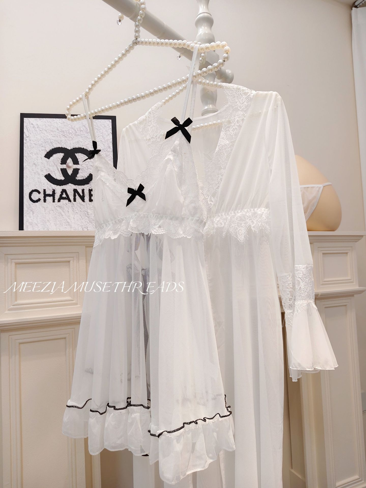 • 흰색 (잠옷 + 끈팬티 + 가운)
