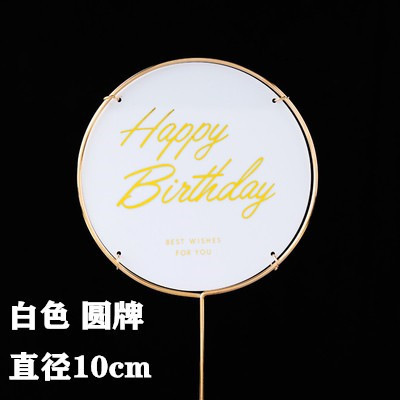 흰색 꽃이 있는 철제 원형 케이크 장식 HB 핫 스탬핑 투명 아크릴 원형 사각형 생일 축하 플러그인스토어 가기