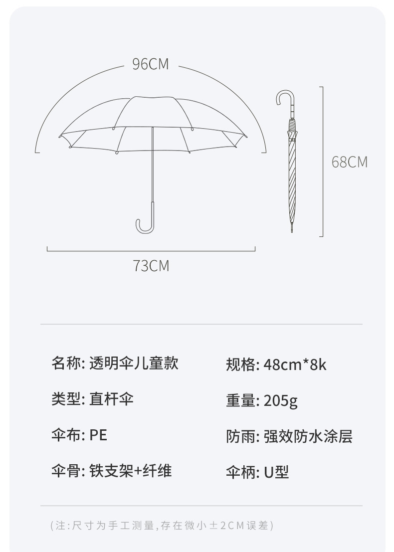 우산 일회용 일괄 어린이 우산 투명한 작은 흰색 우산 학교용 수동 강화 두꺼운 긴 손잡이 우산