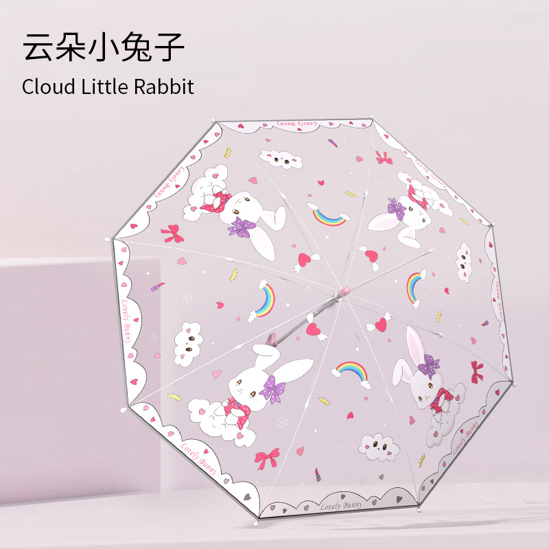 • 8본 어린이용 투명(반사 스트립) 안전 핀치 방지 긴 우산 - Yunduo Rabbit