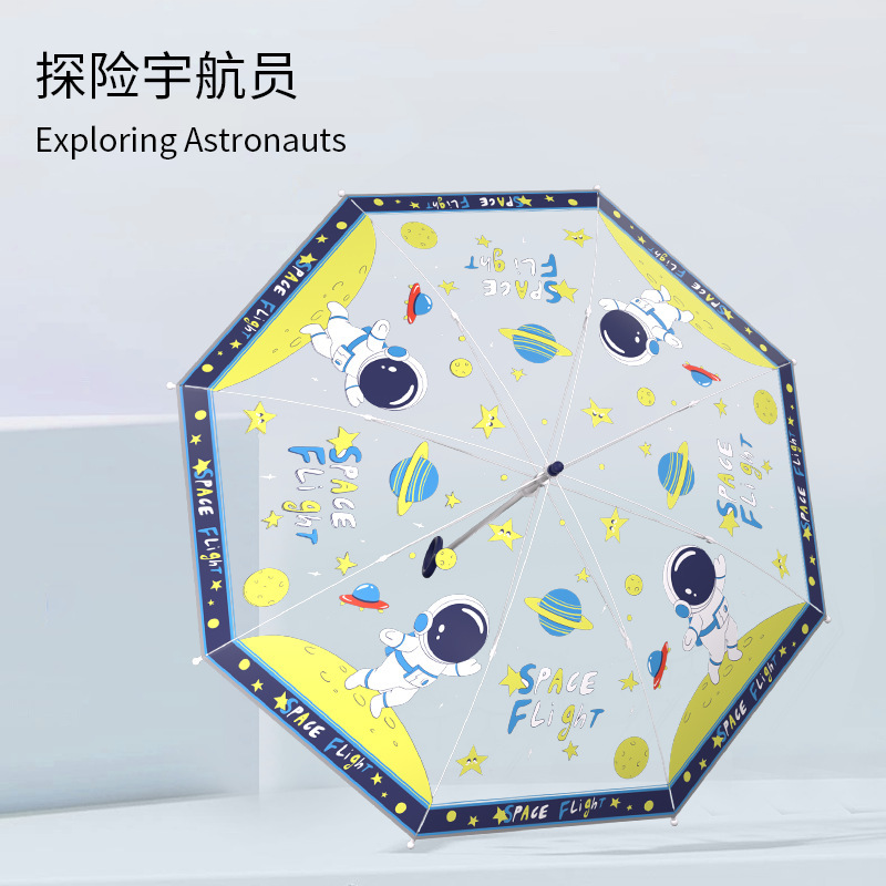 • 8본 어린이용 투명(반사 스트립) 안전 핀치 방지 장우산 - 모험 우주 비행사