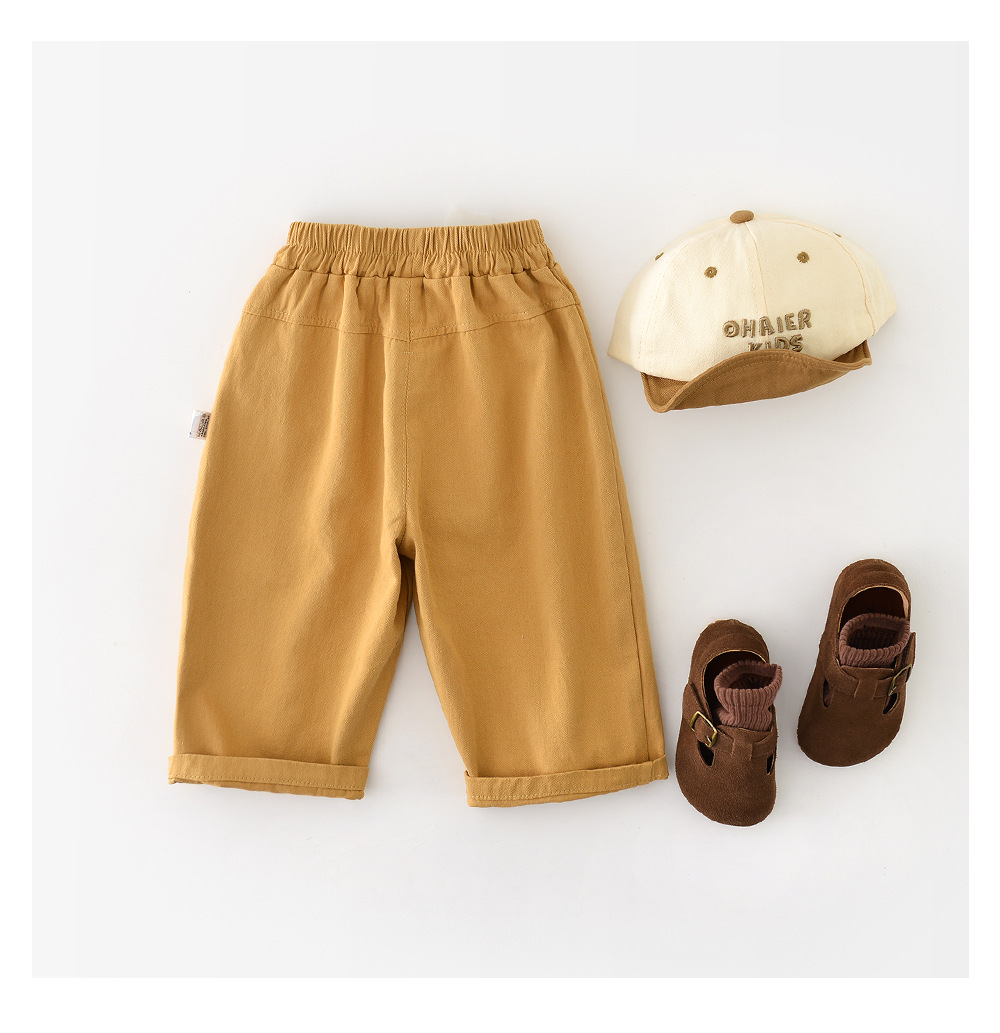 2025 새로운 가을 어린이 유행 중간 허리 바지 소년과 소녀를위한 느슨한 포켓 캐주얼 바지 53027