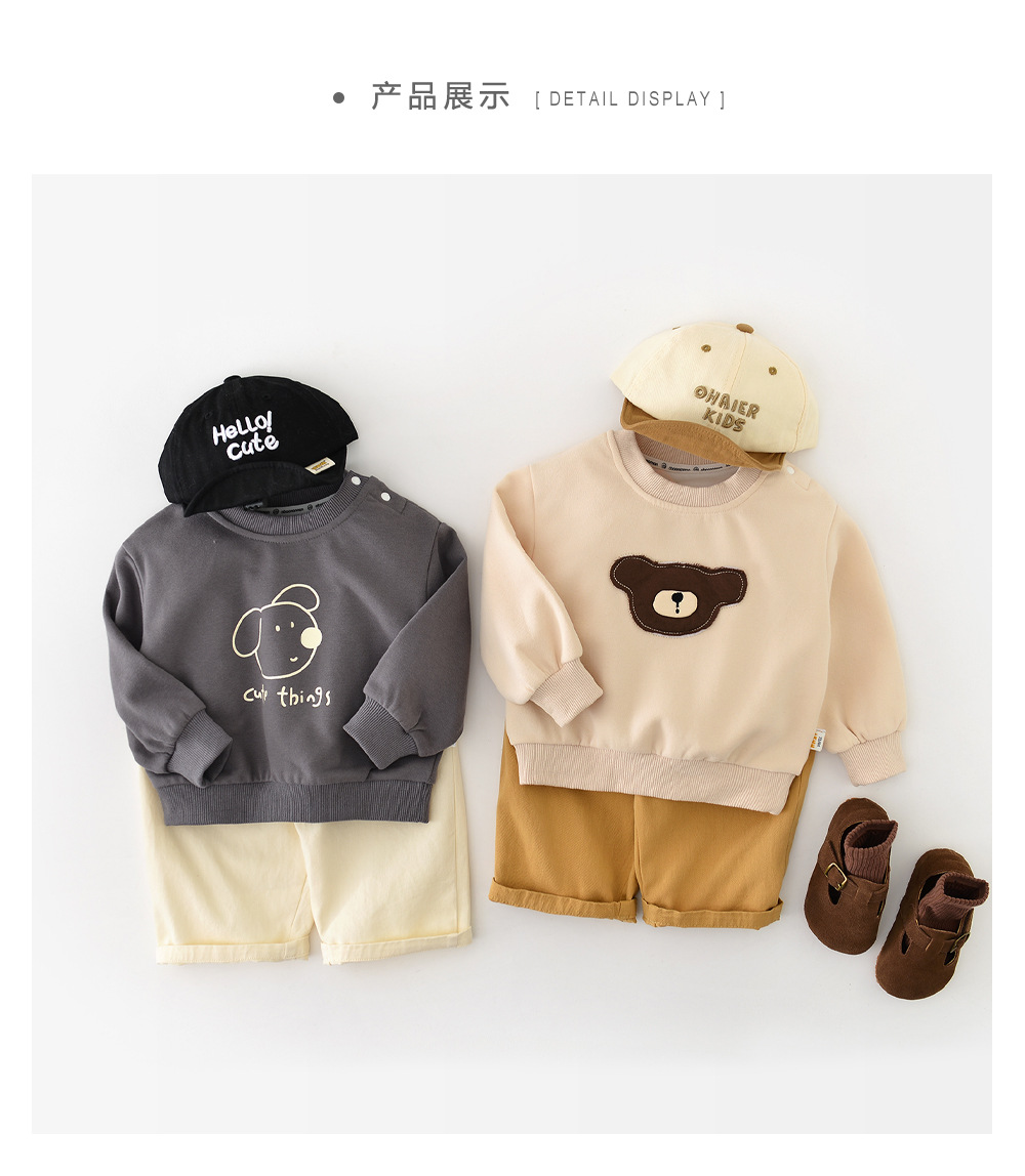 宝宝棉衣套装婴幼儿小熊连帽绗棉保暖冬装连帽加绒棉衣棉裤男女童