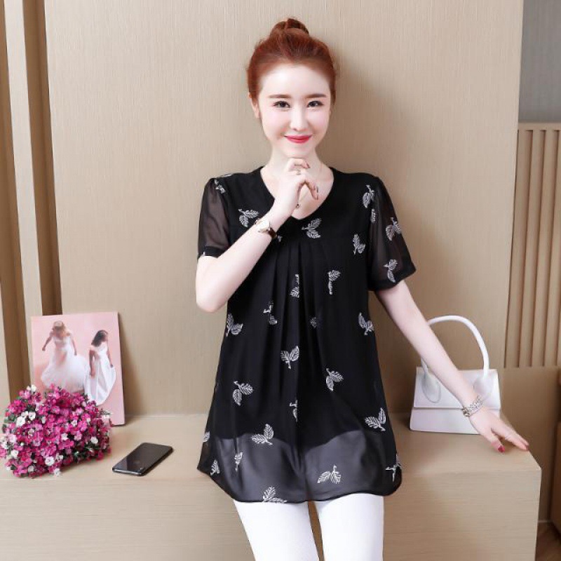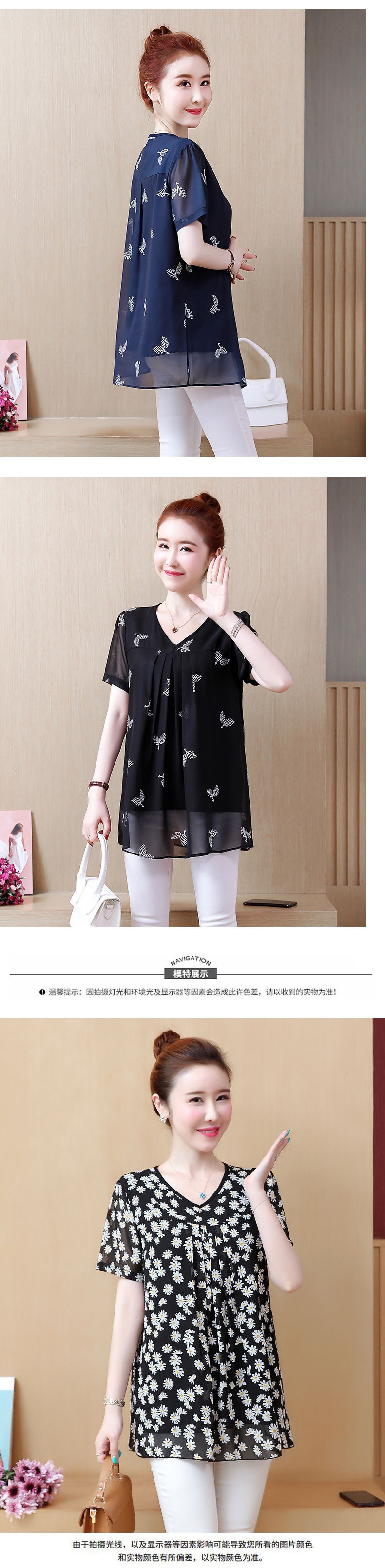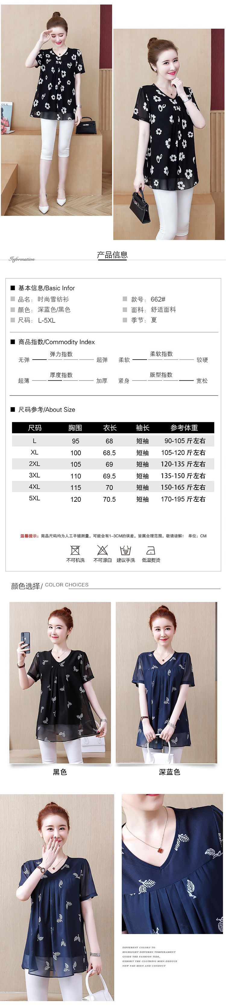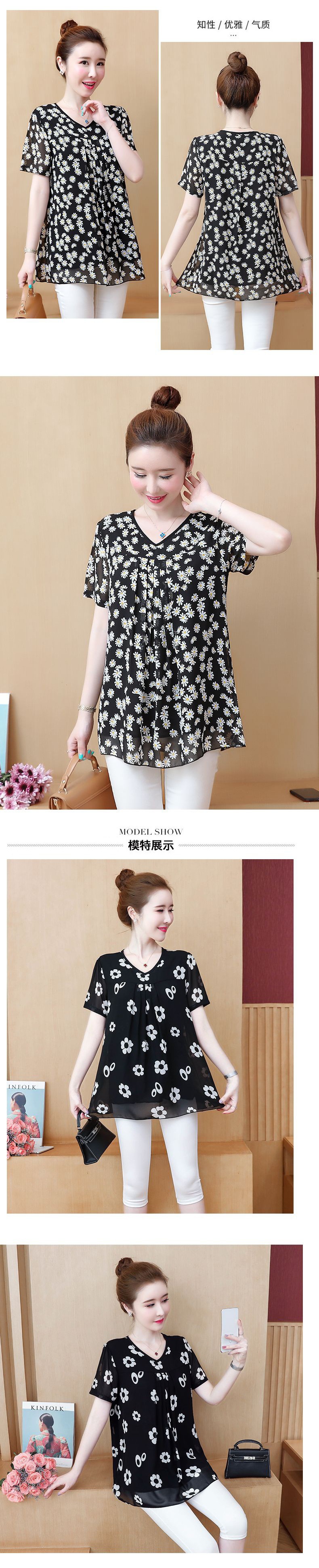 Fat mm 꽃 무늬 쉬폰 셔츠 반팔 플러스 사이즈 여성 의류 2025 여름 새로운 느슨한 배꼽 커버 탑 서양식 작은 셔츠스토어 가기