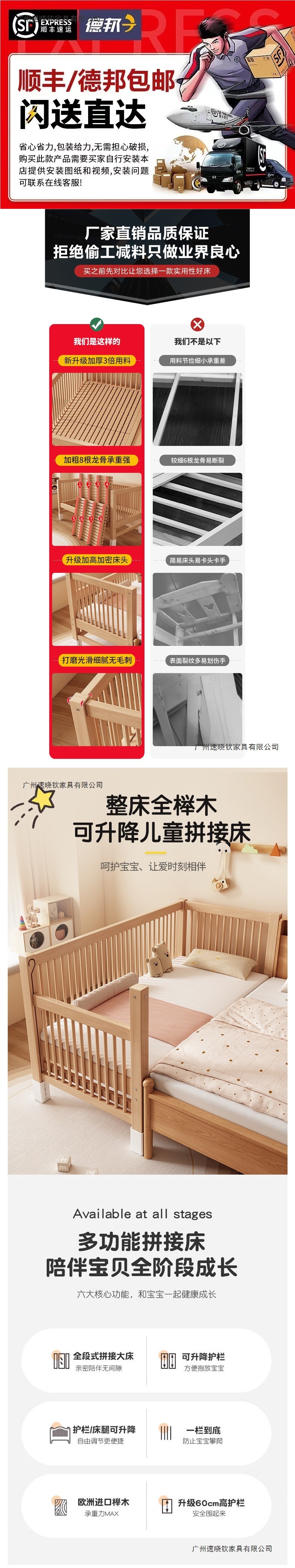 올브리치 원목 접합 침대, 어린이 침대, 원목 유아용 침대, 확장 접합 대형 침대, 어린이 침대 옆 침대, 어린이 접합 침대