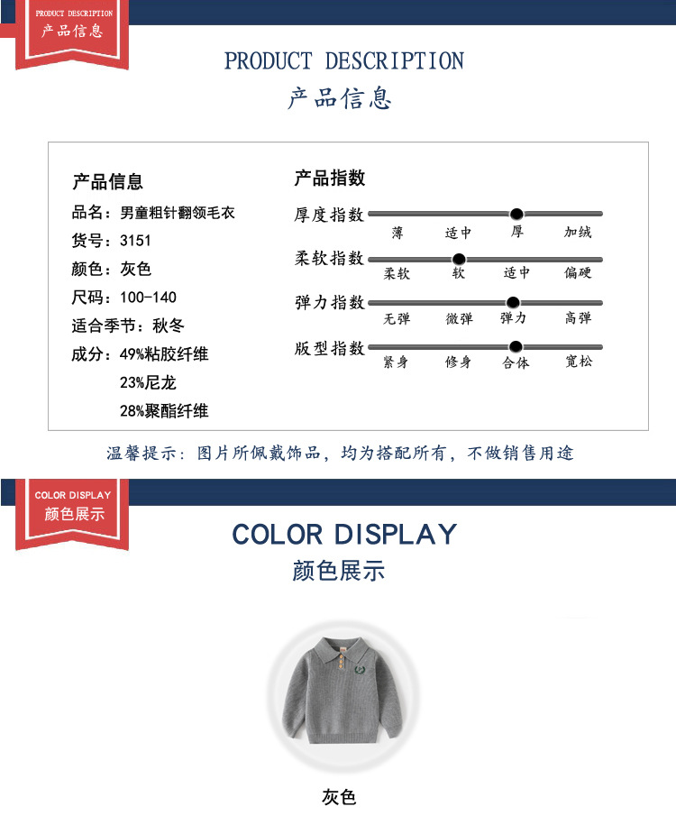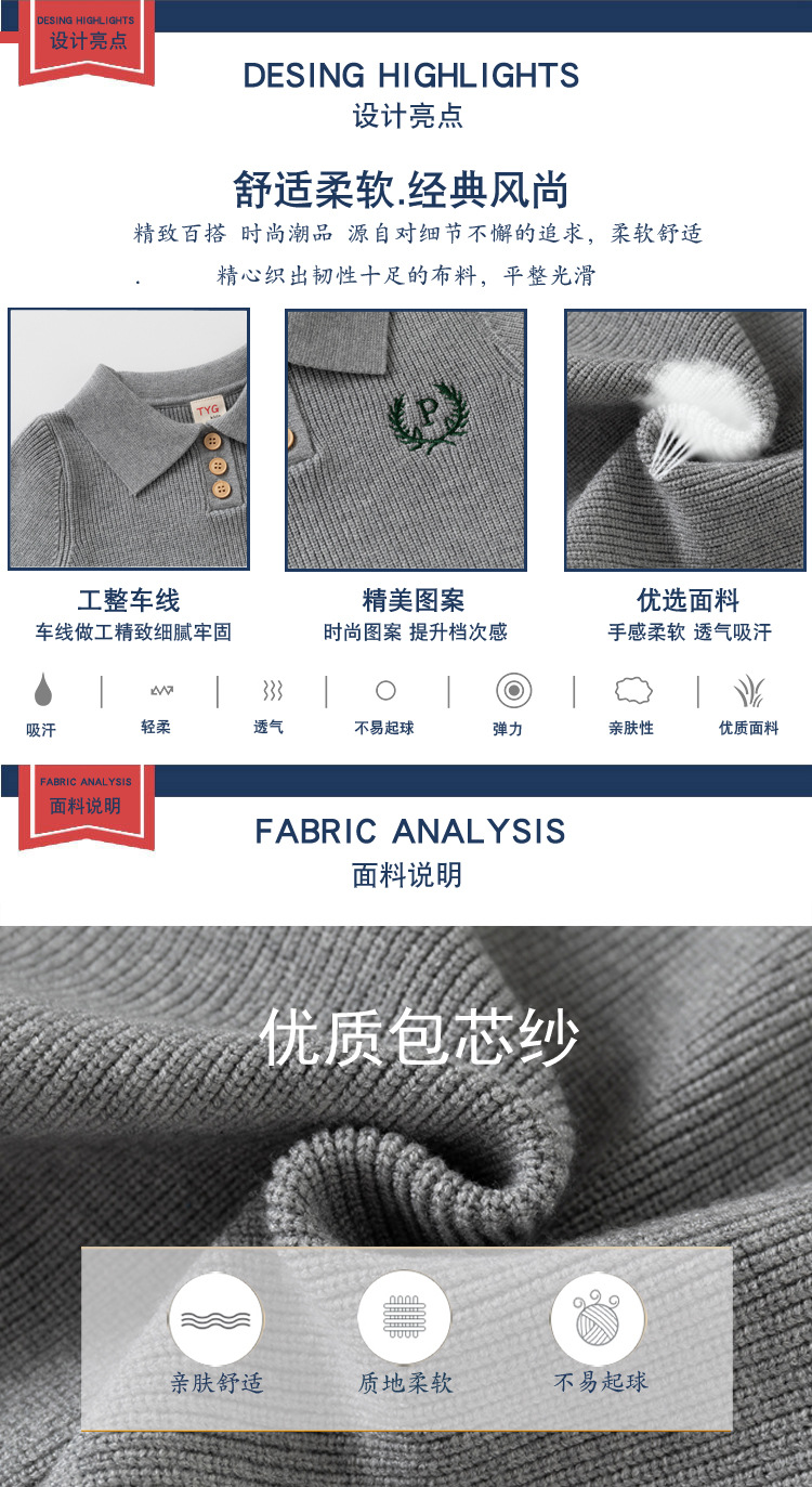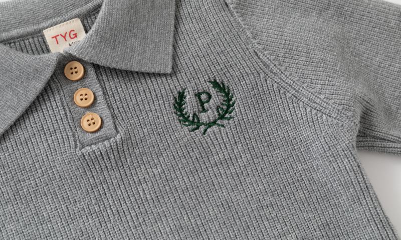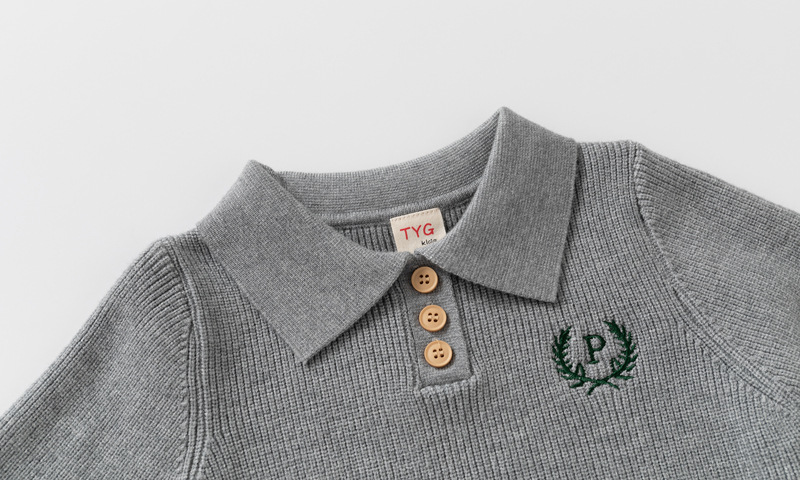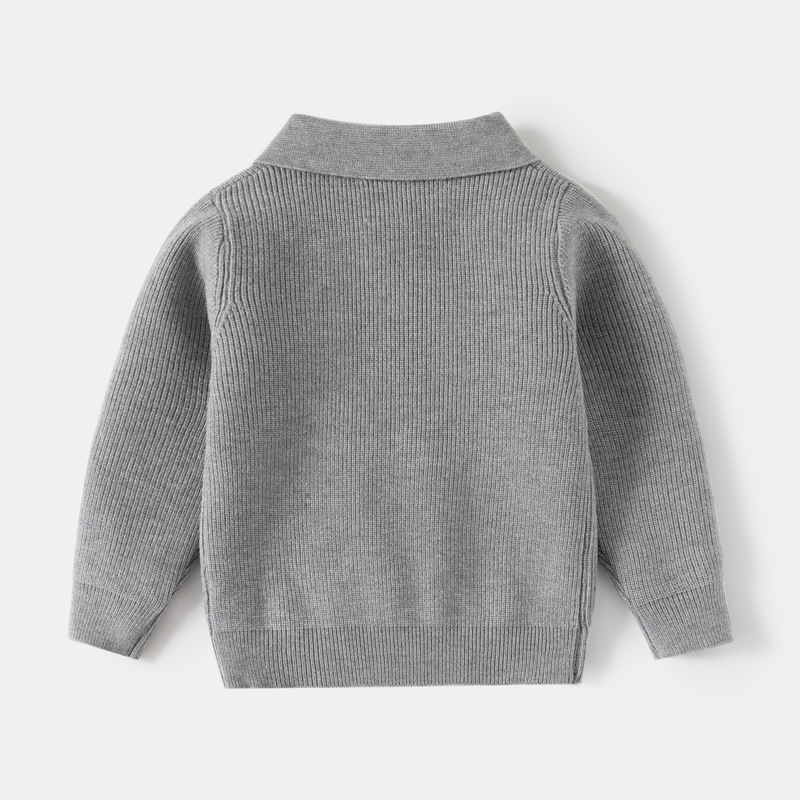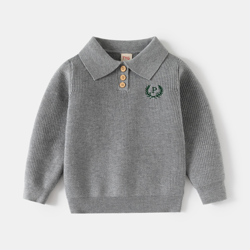 중소형 어린이를 위한 가을 겨울 아동복 문자 자수 스웨터 대리점 유통 두꺼운 니트 코어 스펀 원사 니트 라펠 탑
