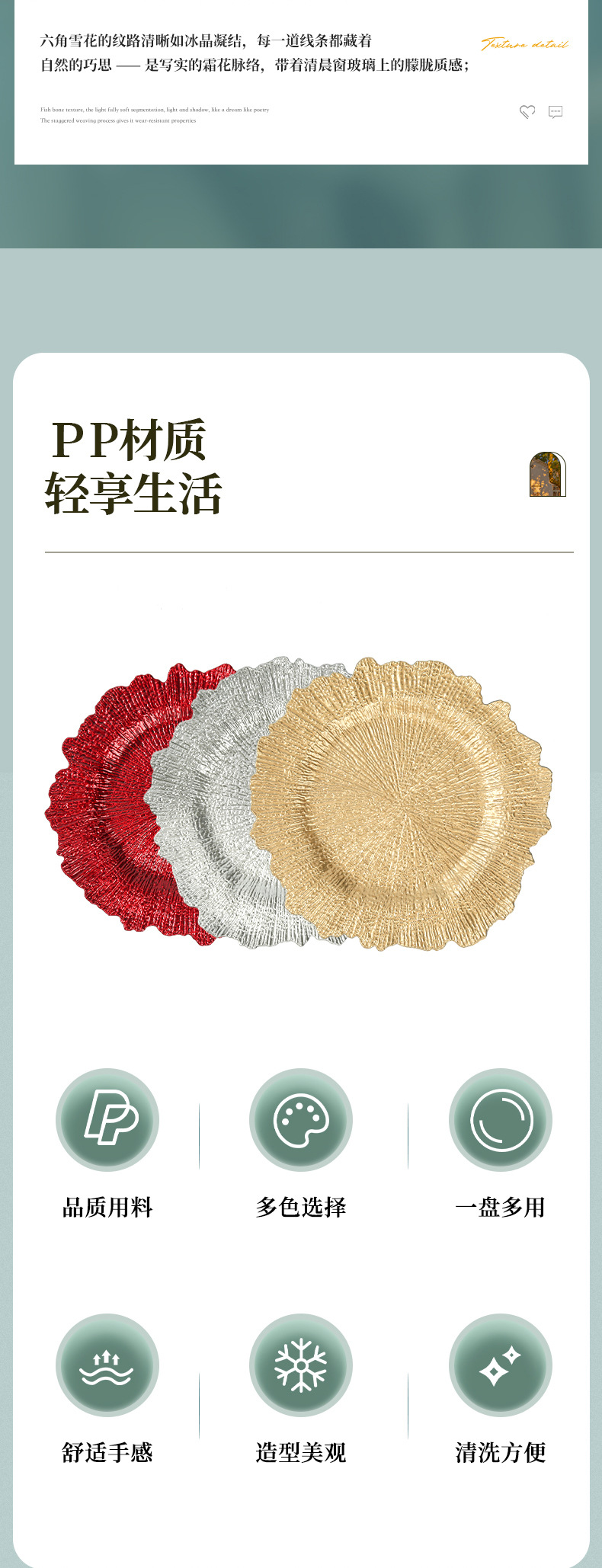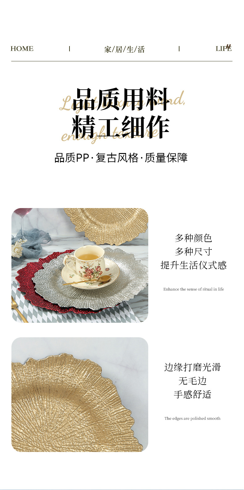 페인트칠 플라스틱 접시 충전기 접시 유럽식 가정용 서양식 장식 트레이 호텔 파티 연회 접시