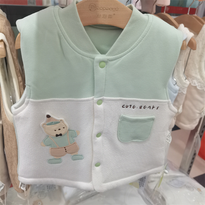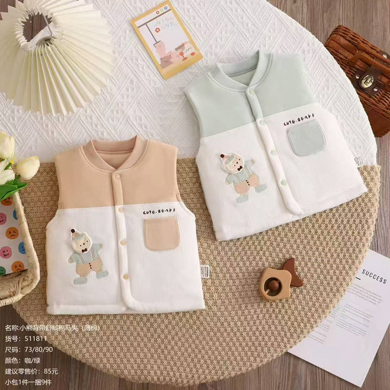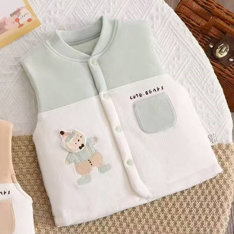 가을, 겨울 아기 얇은 면화 스탠드 칼라 조끼 곰 스트랩 부드러운 벨벳 면화 아기 조끼 소년과 소녀 조끼 73-90 크기스토어 가기