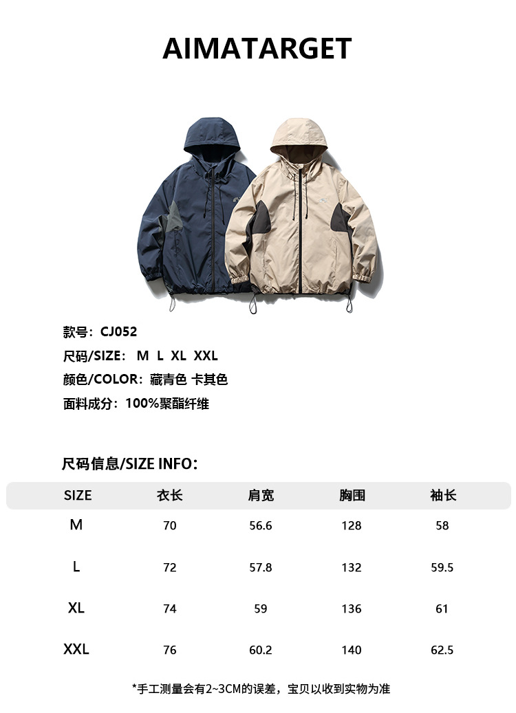 AIMATARGET 일본 복고풍 야외 기능성 재킷 남성 대비 색상 스플 라이스 자수 후드 재킷 CJ052
