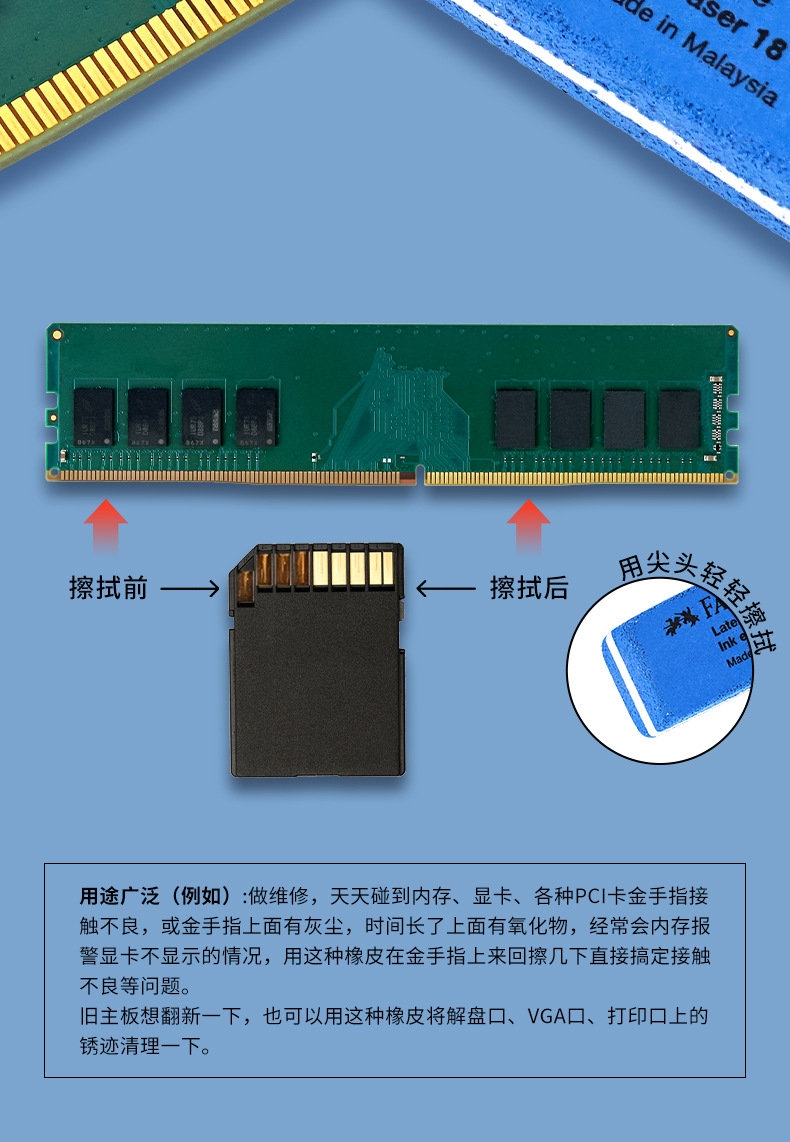 M2 하드 드라이브 골드 핑거 반투명 지우개 데스크탑 마더보드 메모리 스틱 그래픽 카드 인터페이스 흔적 없이 청소 및 개조스토어 가기