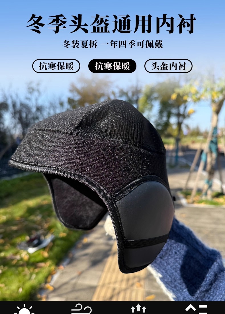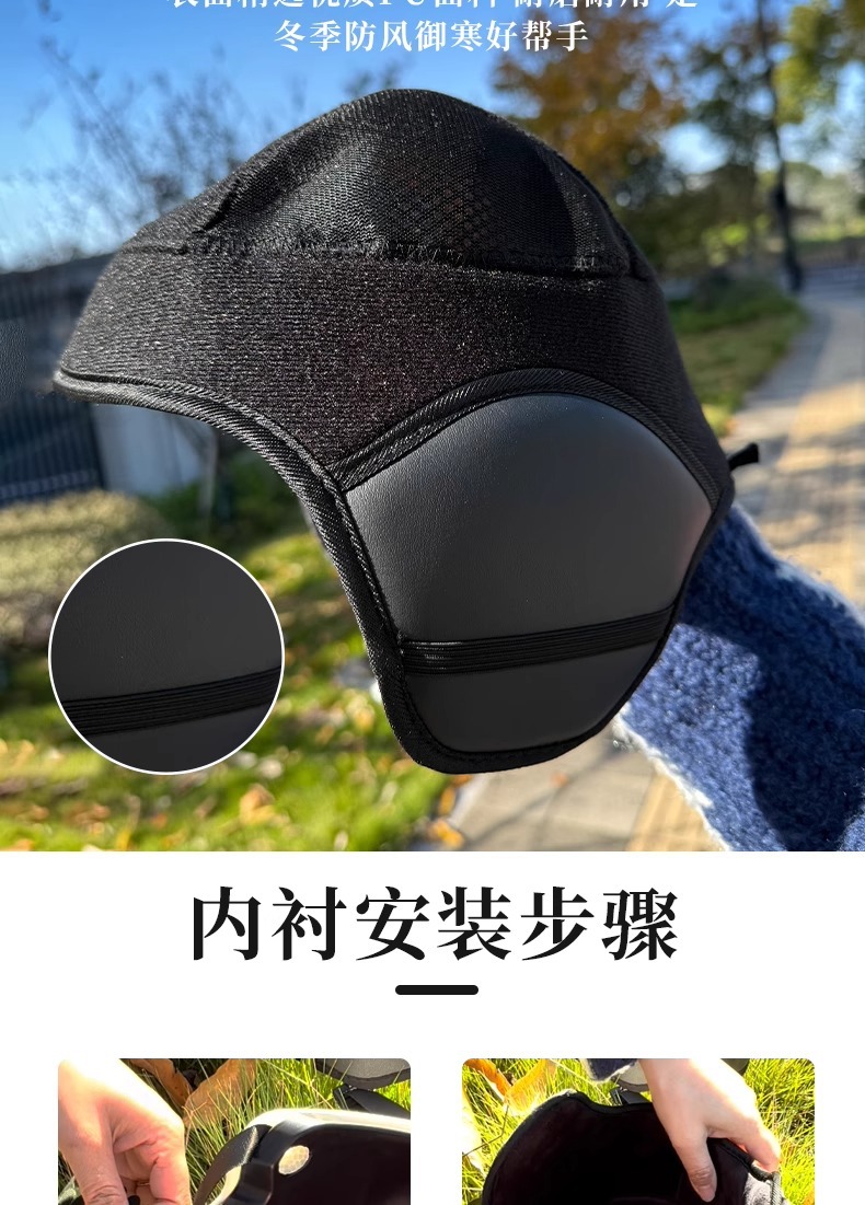 3C 인증 헬멧 안감 캡, 탈착식 귀 보호 액세서리, 전기 자동차 따뜻한 마스크, 방풍 및 방한, 범용 두꺼운스토어 가기