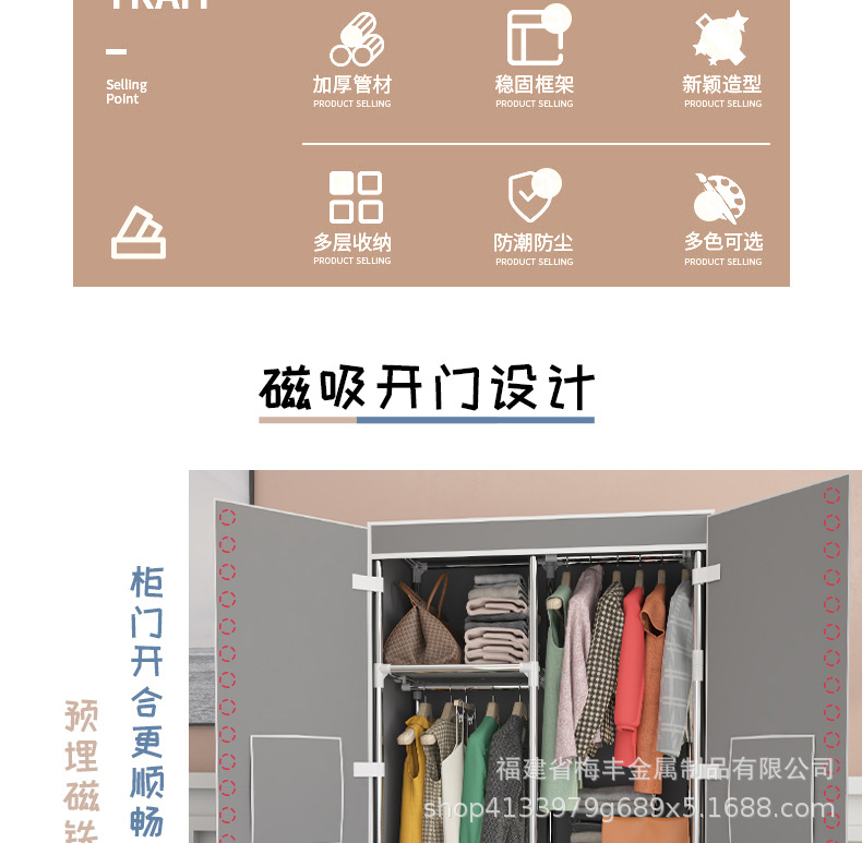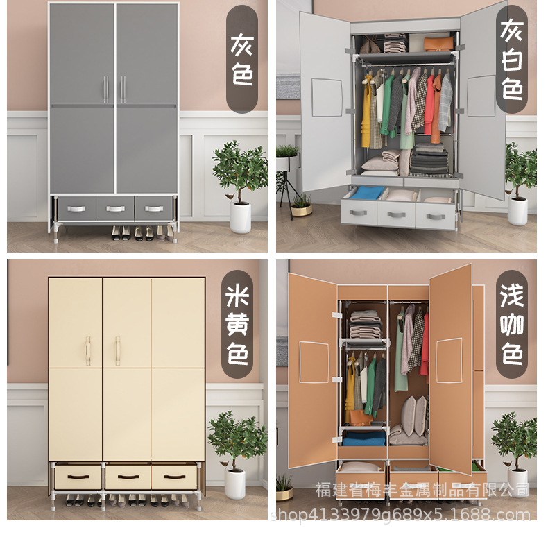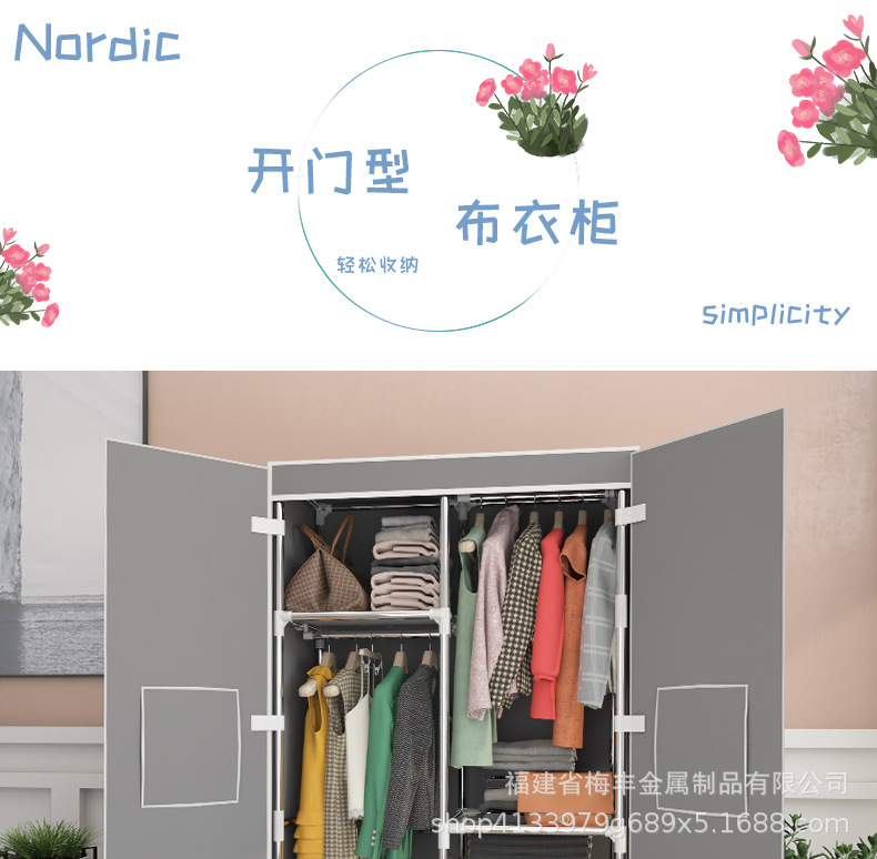 [와우] 인터넷 연예인 오픈형 천옷장 간이옷장 가정용 경제적 수납 강화 간이옷장