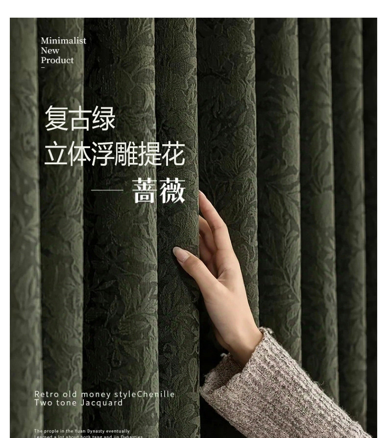 프렌치 로즈 양각 커튼 자카드 블랙 아웃 셔닐 거실 하이 엔드 라이트 럭셔리 침실 하이 엔드 Shaoxing 커튼