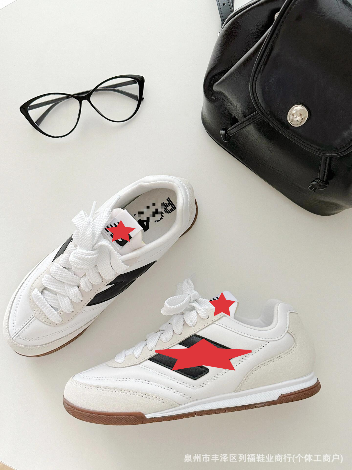 소가죽 버전 ~ Su Yinyin의 두꺼운 밑창 캐주얼 스포츠 스니커즈, 여성 육군 훈련 신발, 컬러 블록 가죽 흰색 신발