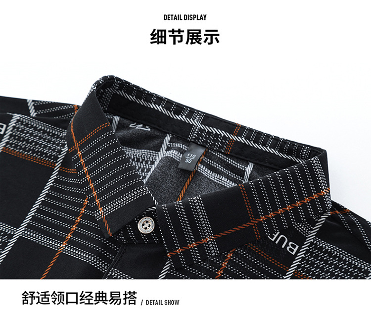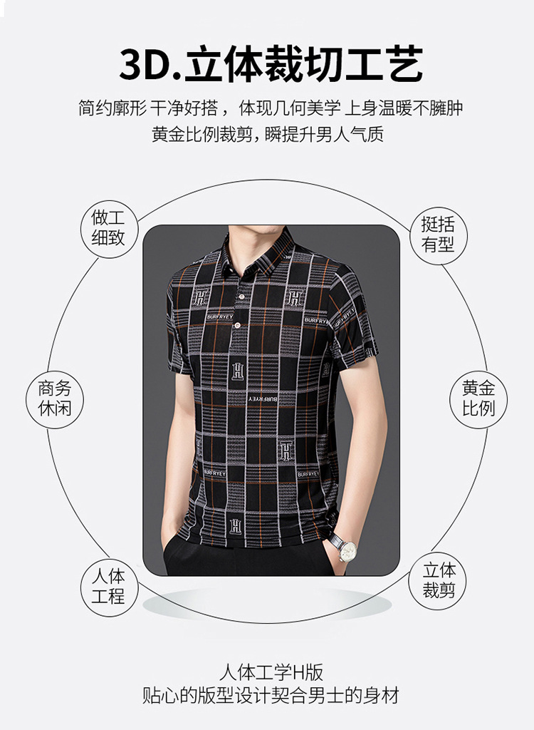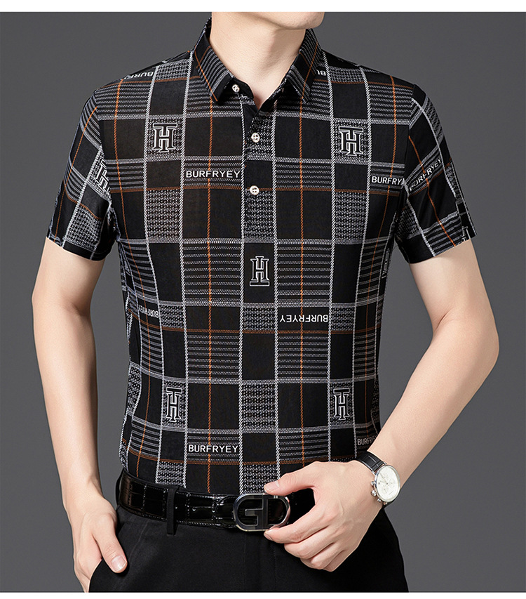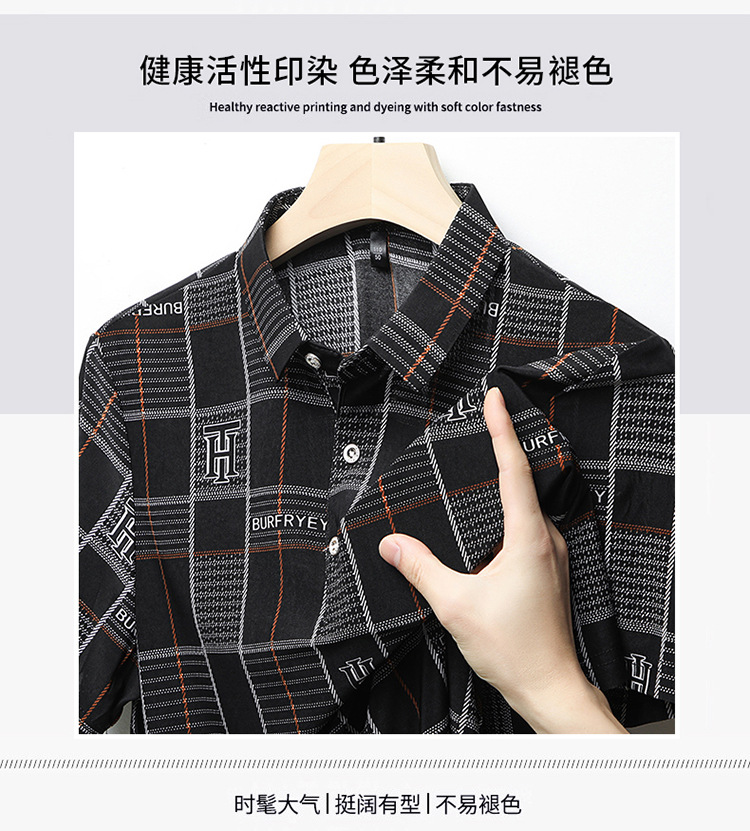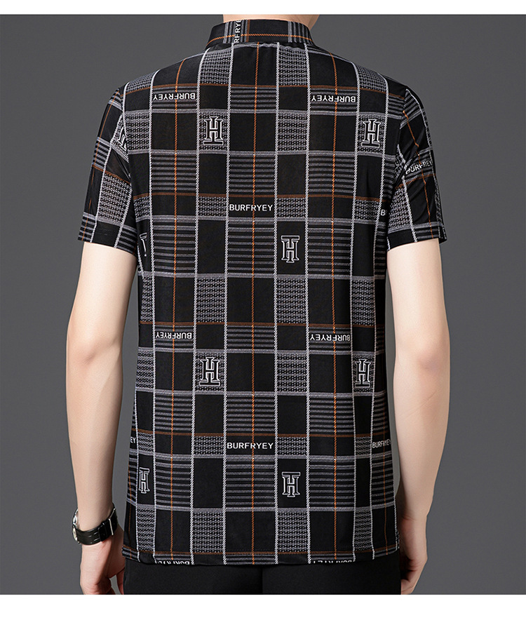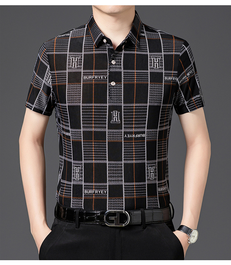 반팔 폴로 셔츠 여름 남성 패션 체크 무늬 프린트 티셔츠 라펠 중년 남성 얇은 반팔 탑 티셔츠