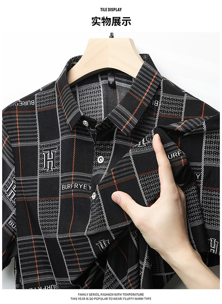 반팔 폴로 셔츠 여름 남성 패션 체크 무늬 프린트 티셔츠 라펠 중년 남성 얇은 반팔 탑 티셔츠스토어 가기