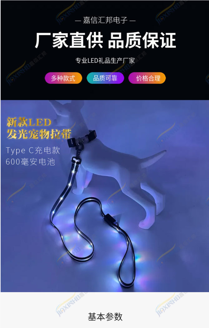 25년 새로운 국경 간 공급 LED 발광 개 가죽끈 애완 동물 가죽끈 TypeC 충전식 방수 고무 웨빙