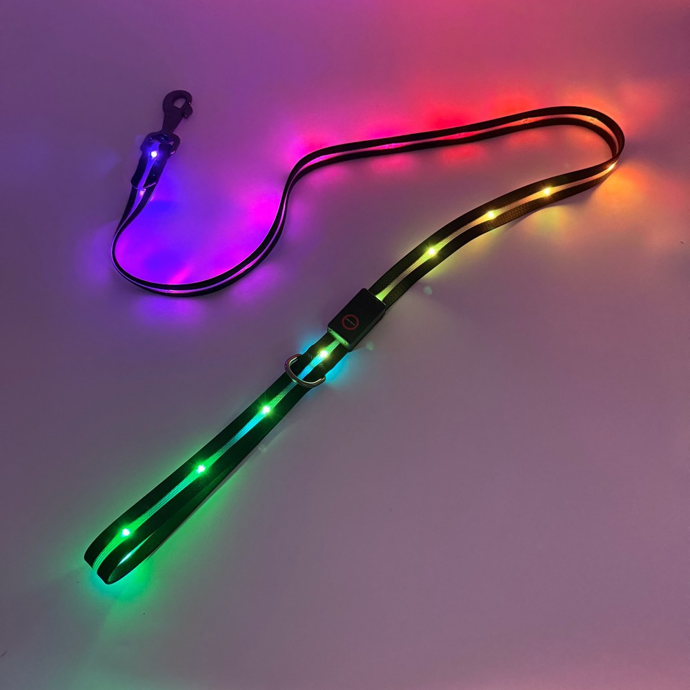 25년 새로운 국경 간 공급 LED 발광 개 가죽끈 애완 동물 가죽끈 TypeC 충전식 방수 고무 웨빙스토어 가기
