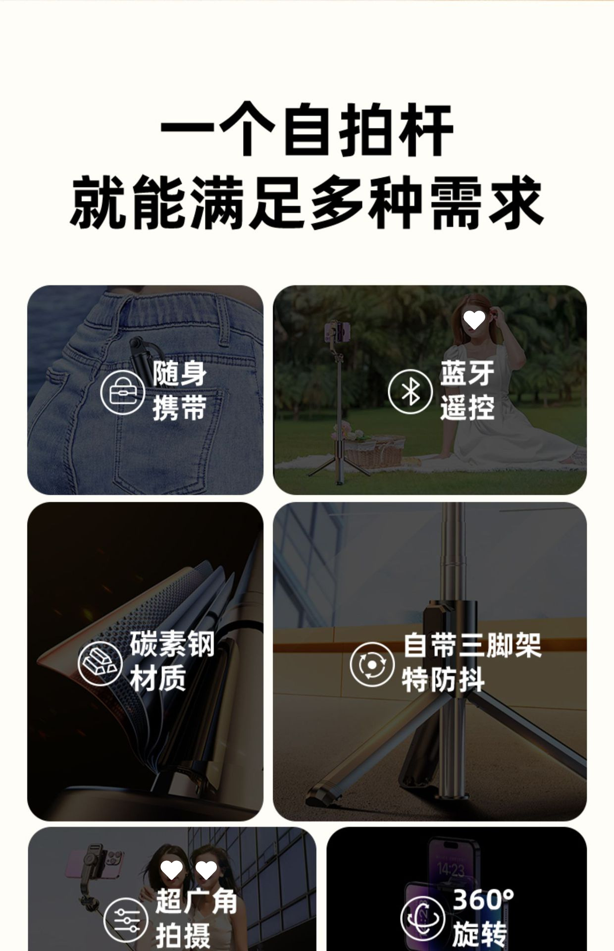다기능 휴대 전화 범용 라이브 방송 스탠드 삼각대 2024 사진 새로운 여행 셀카 스틱 손떨림 방지 통합스토어 가기