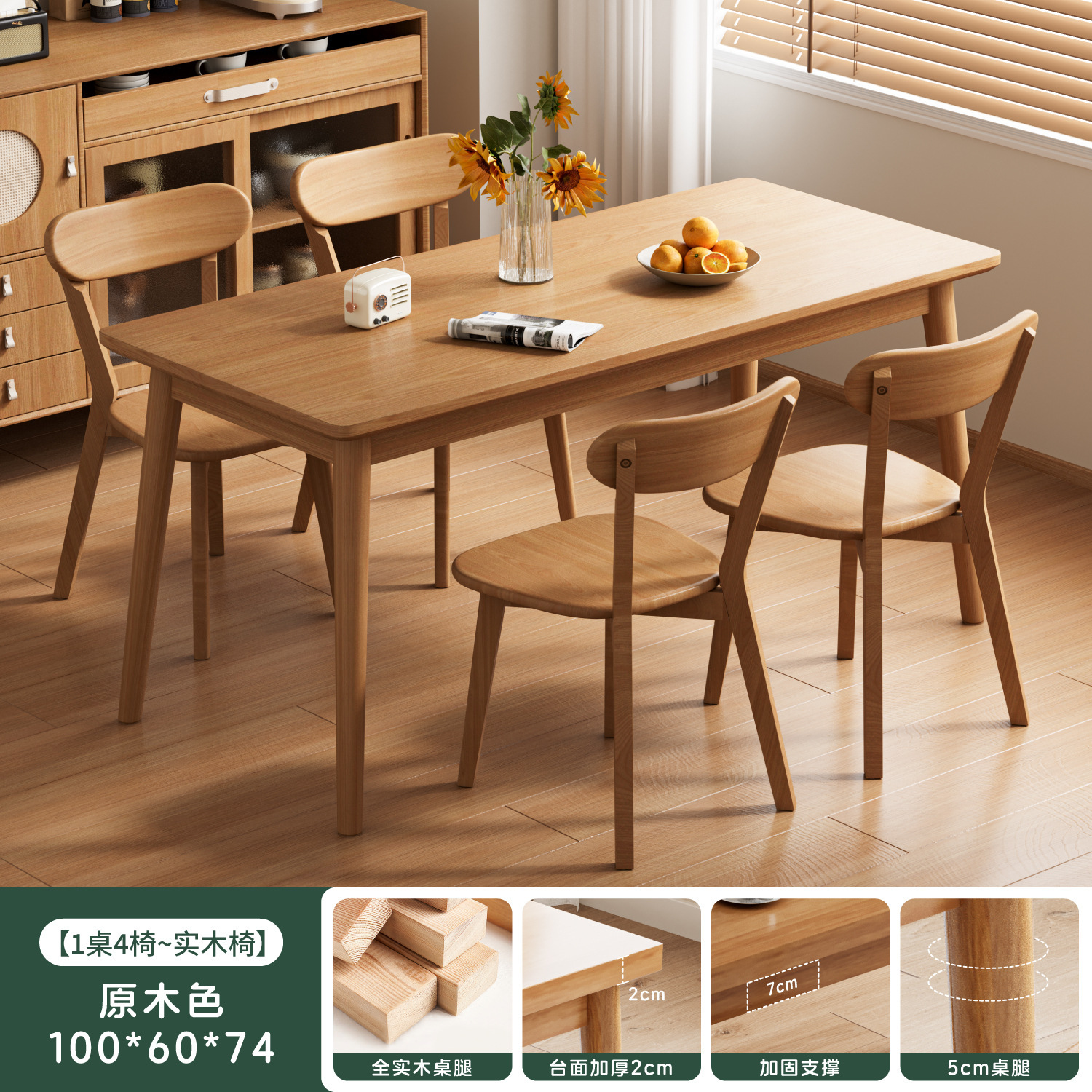 • 고급고무나무 + 원목색상 [100*60*74] 테이블 1개, 의자 4개
