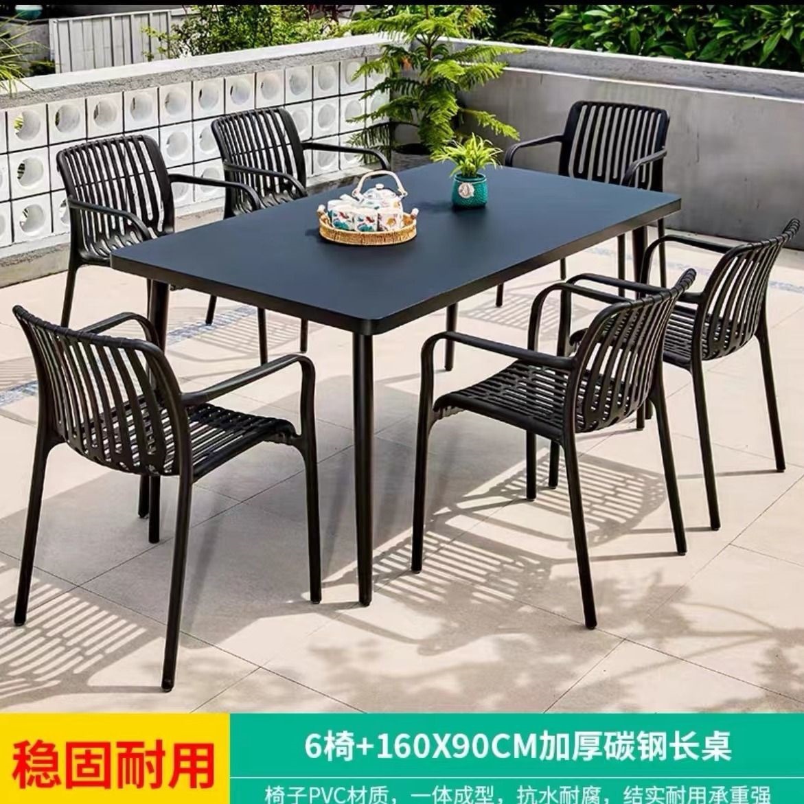 • [블랙] 의자 6개 + 160x90 두꺼운 탄소강 긴 테이블
