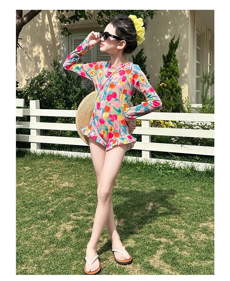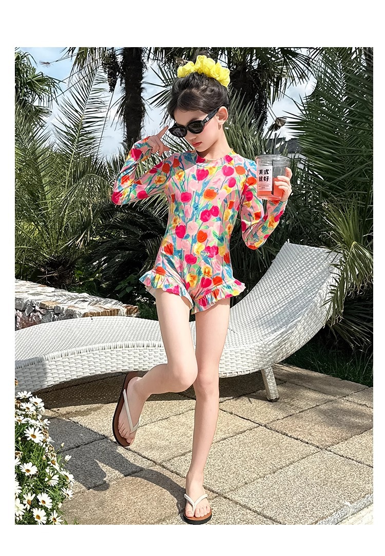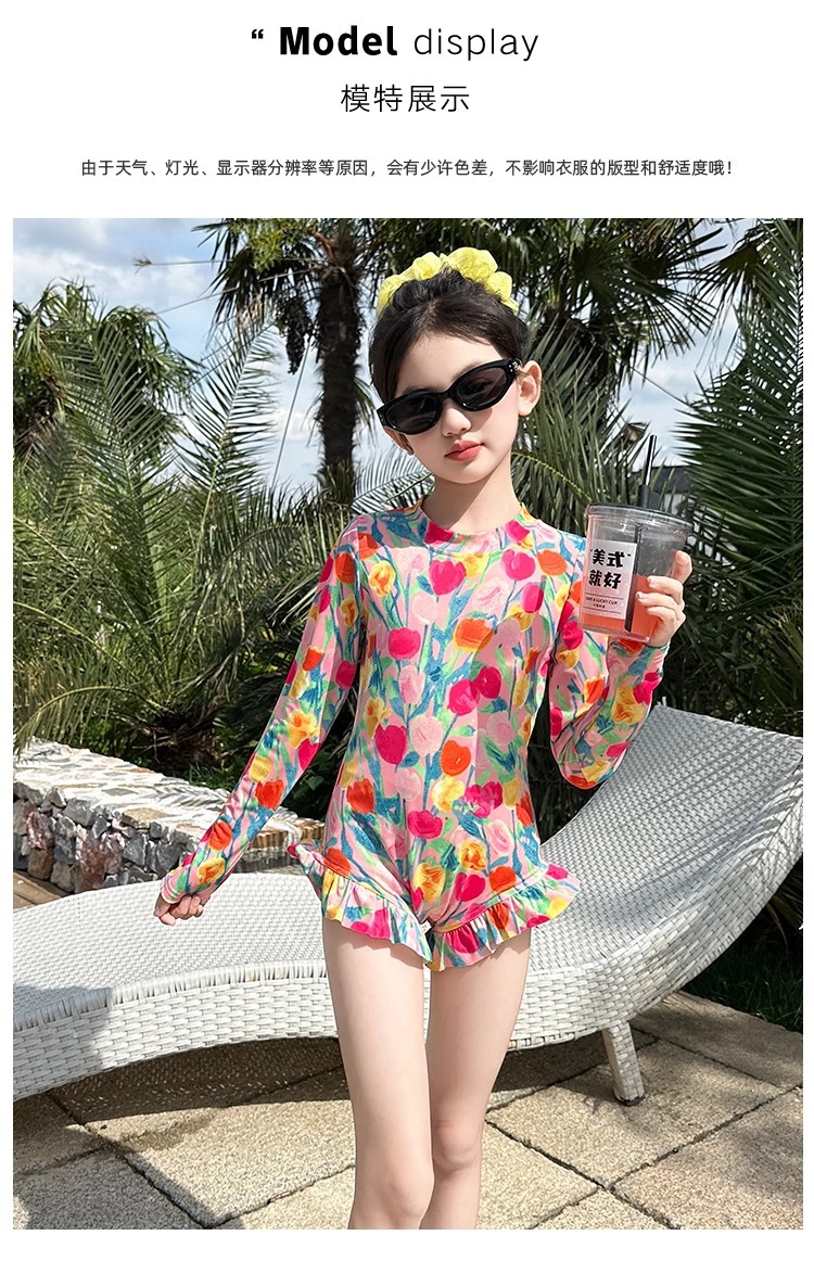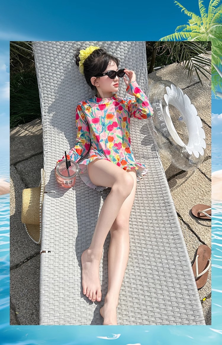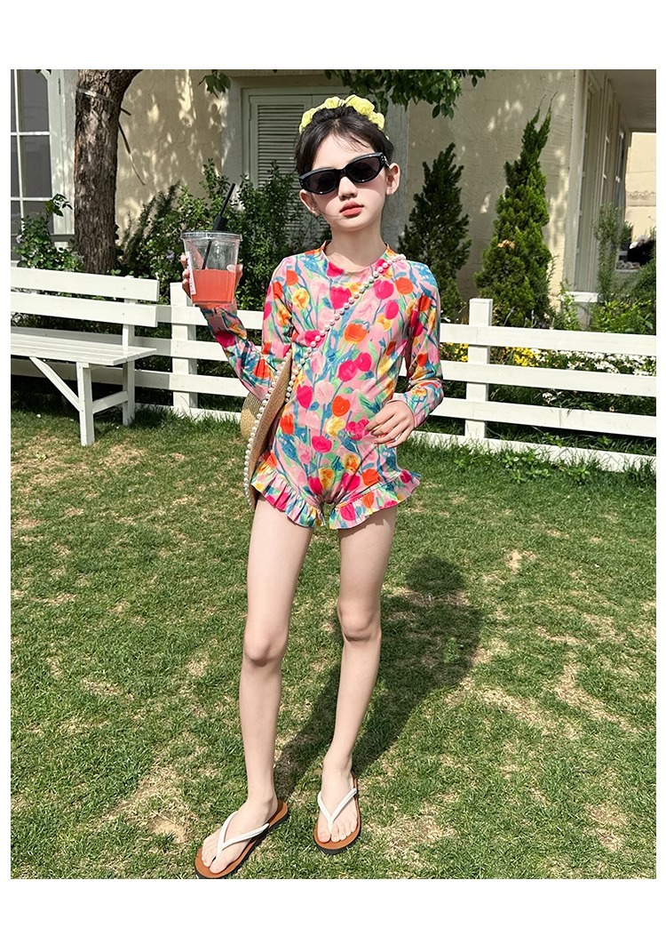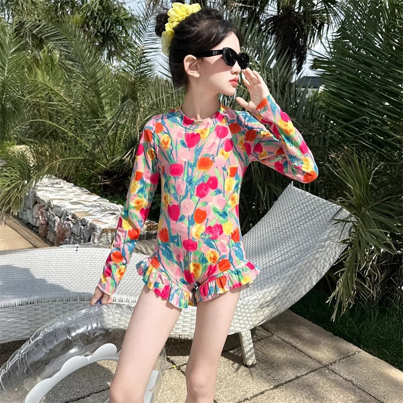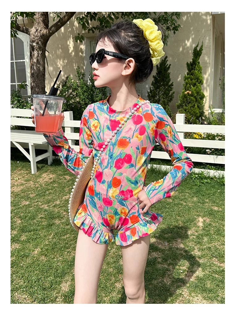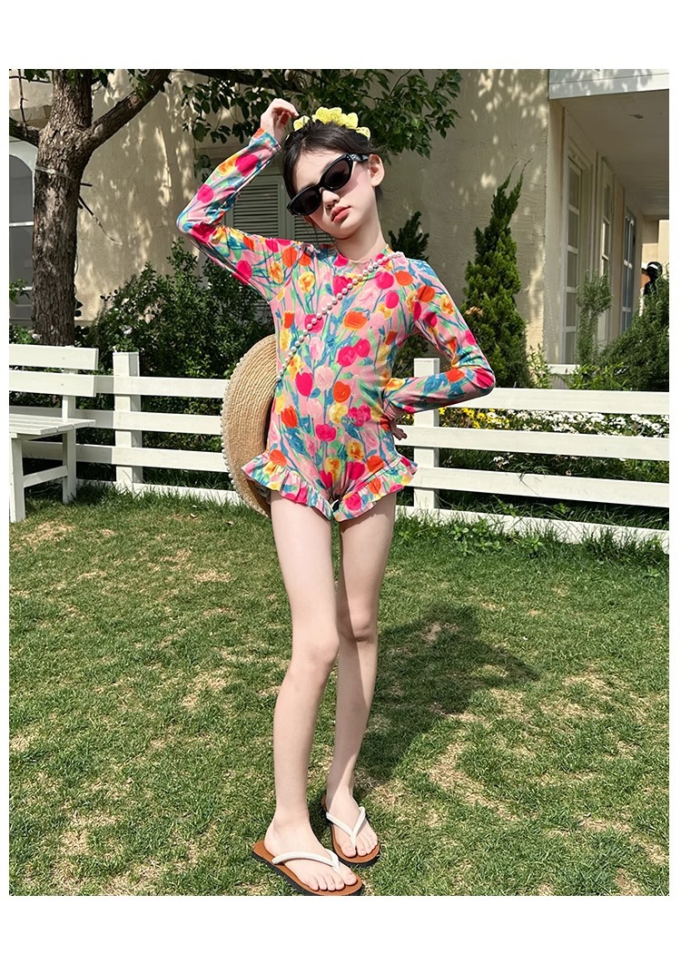 여아 수영복 2025 꽃 큰 어린이 여아 자외선 차단 고급 특수 수영복 어린이 여름 원피스 수영복