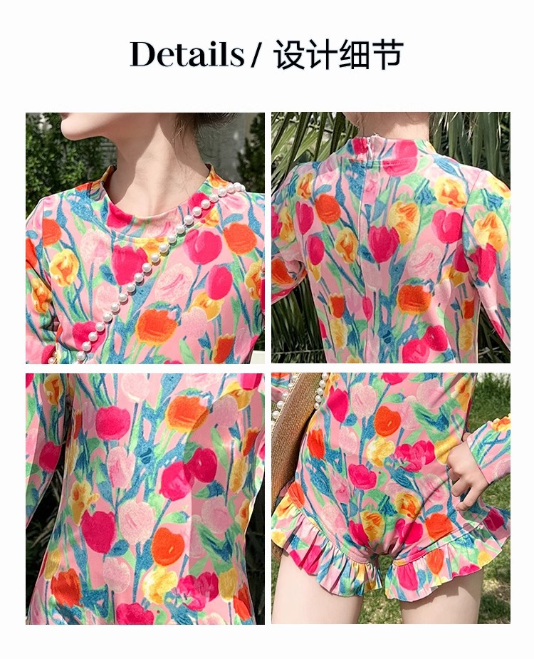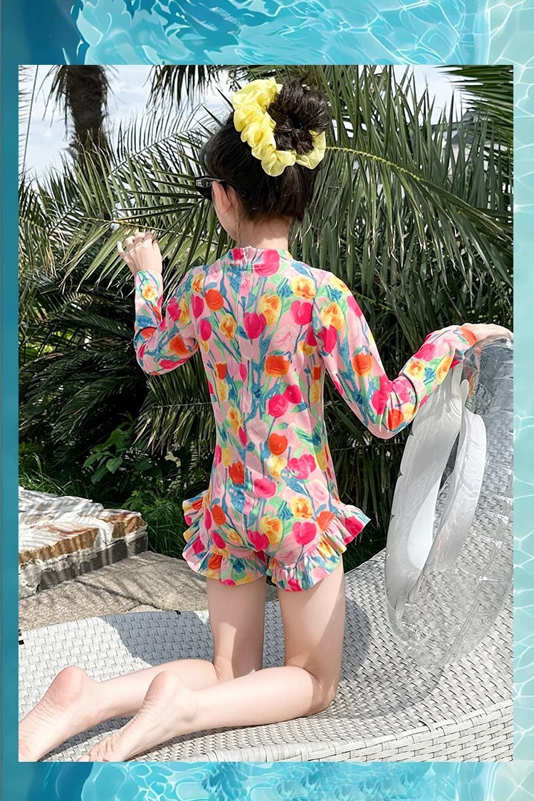 여아 수영복 2025 꽃 큰 어린이 여아 자외선 차단 고급 특수 수영복 어린이 여름 원피스 수영복스토어 가기
