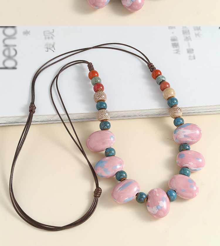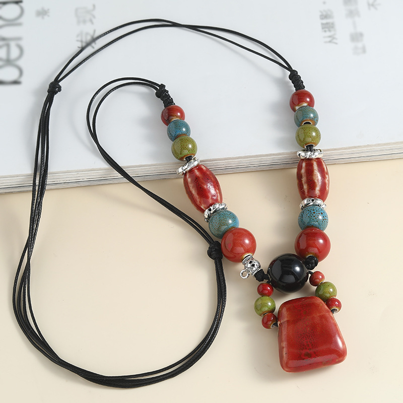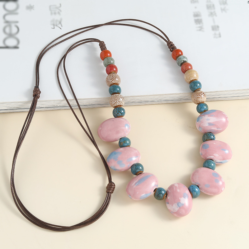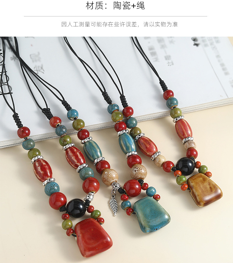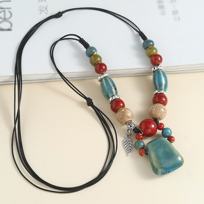 보헤미안 복고풍 세라믹 페르시 목걸이 컬러 도끼 콩 펜던트 민족 스타일 긴 간단한 스웨터 체인스토어 가기