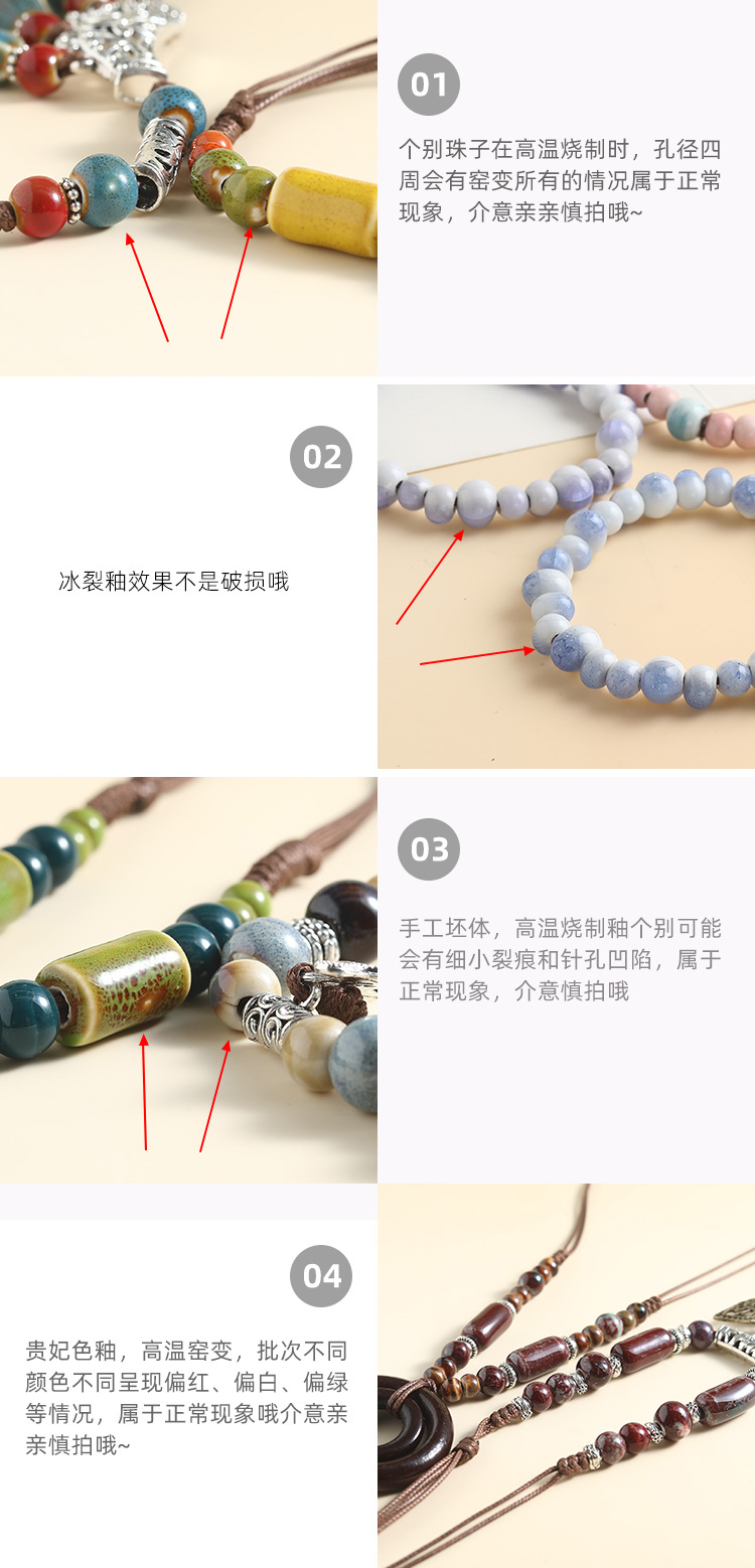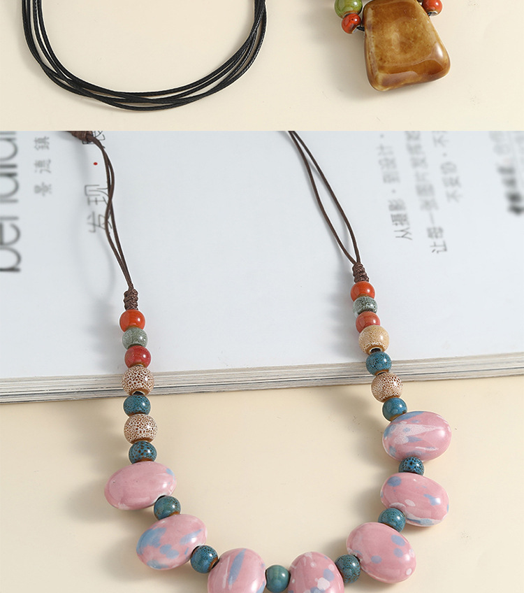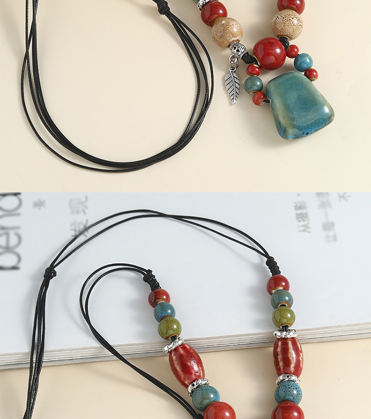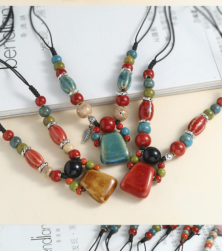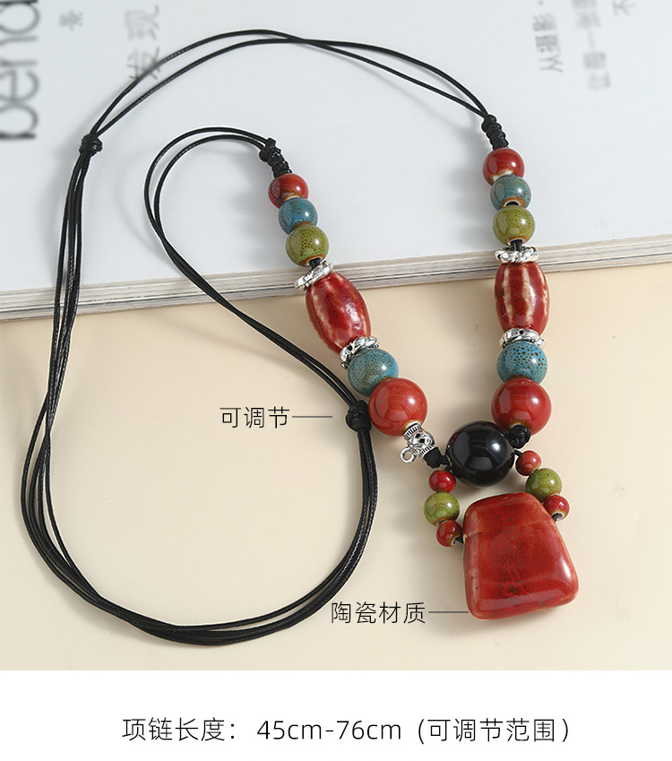 보헤미안 복고풍 세라믹 페르시 목걸이 컬러 도끼 콩 펜던트 민족 스타일 긴 간단한 스웨터 체인스토어 가기