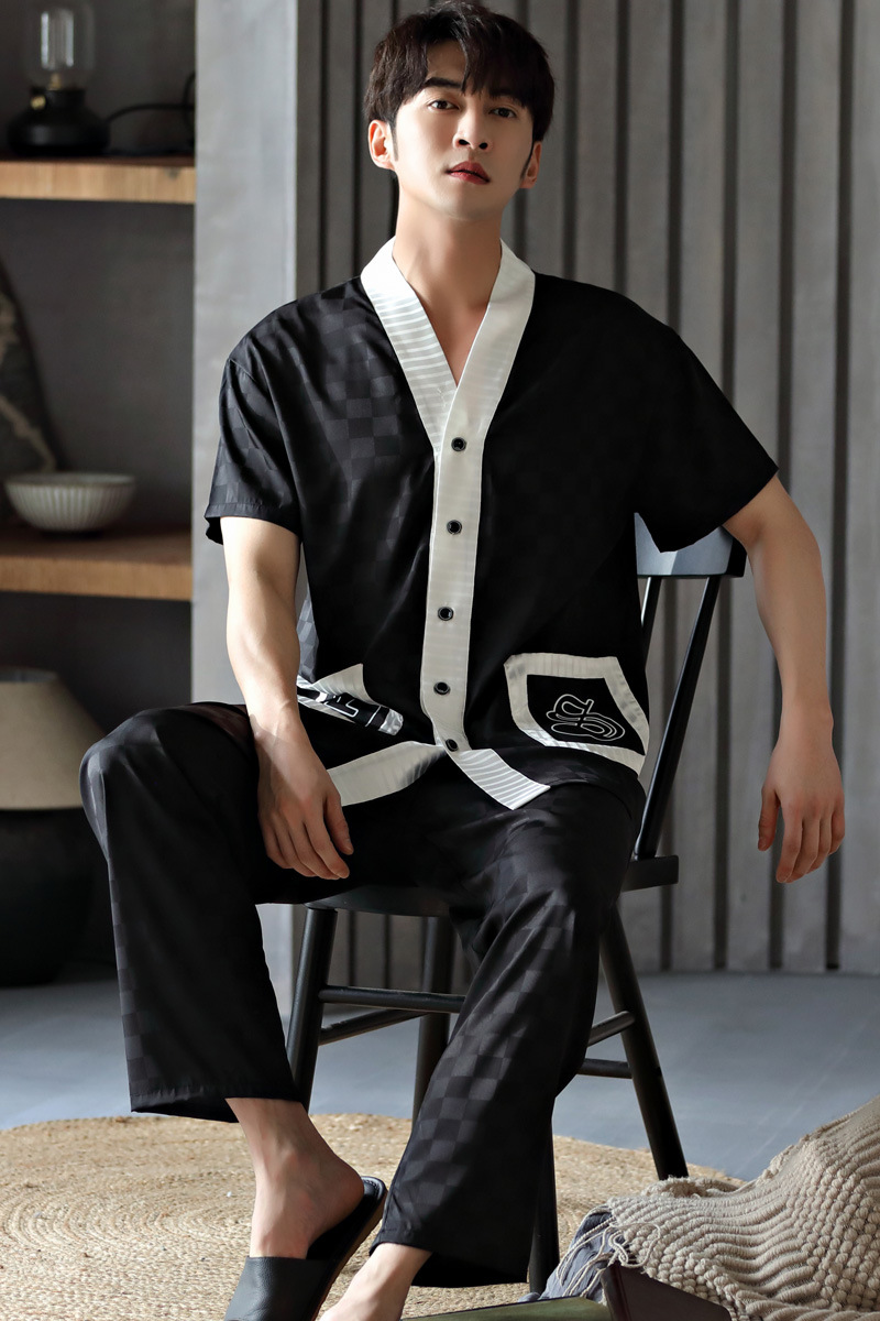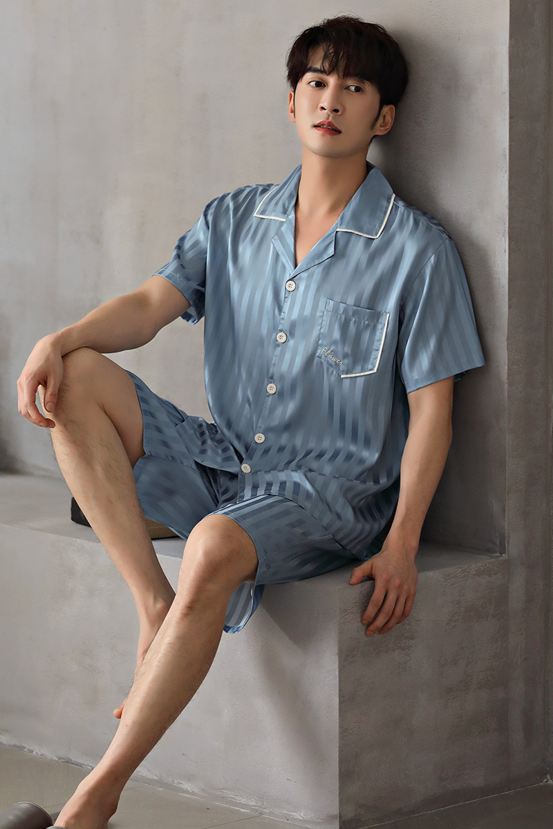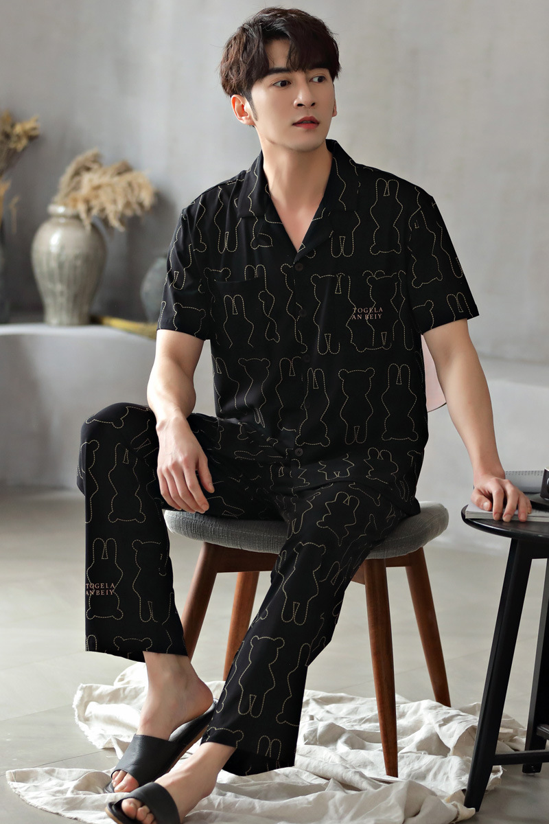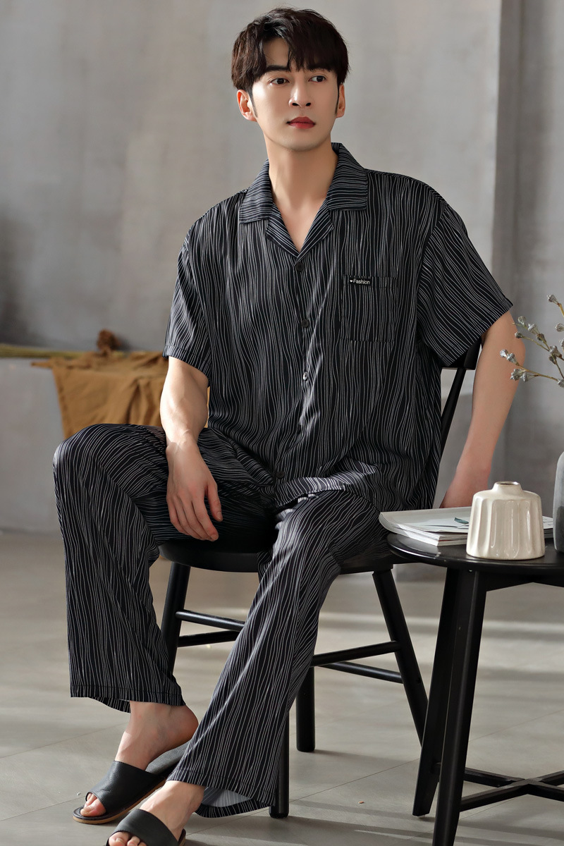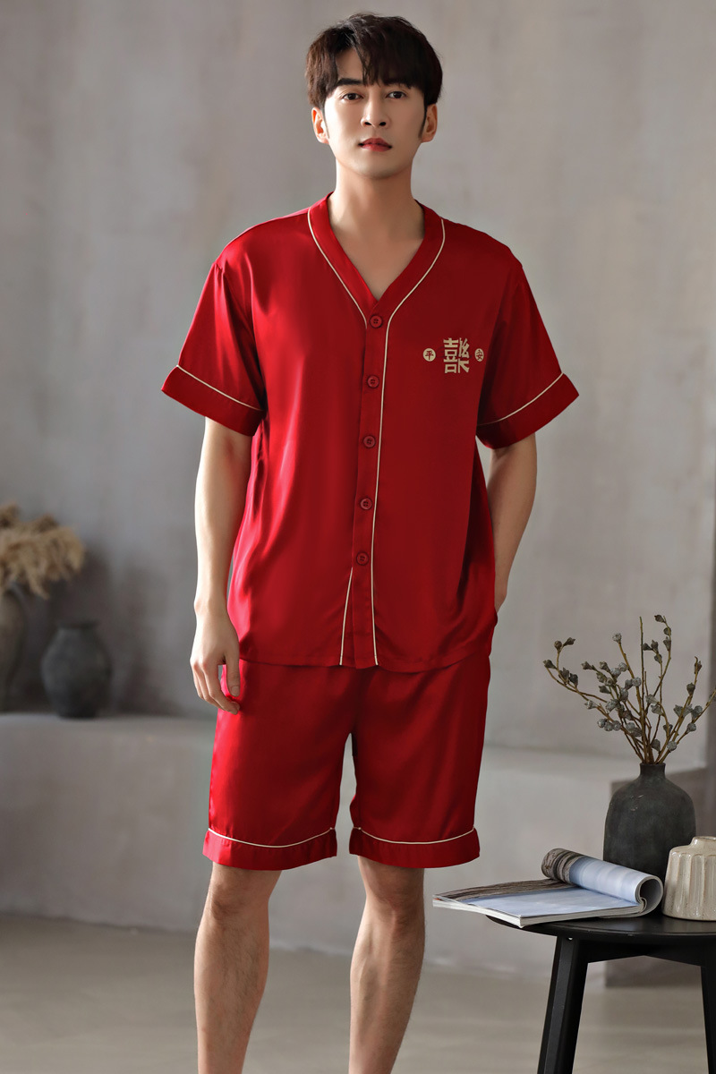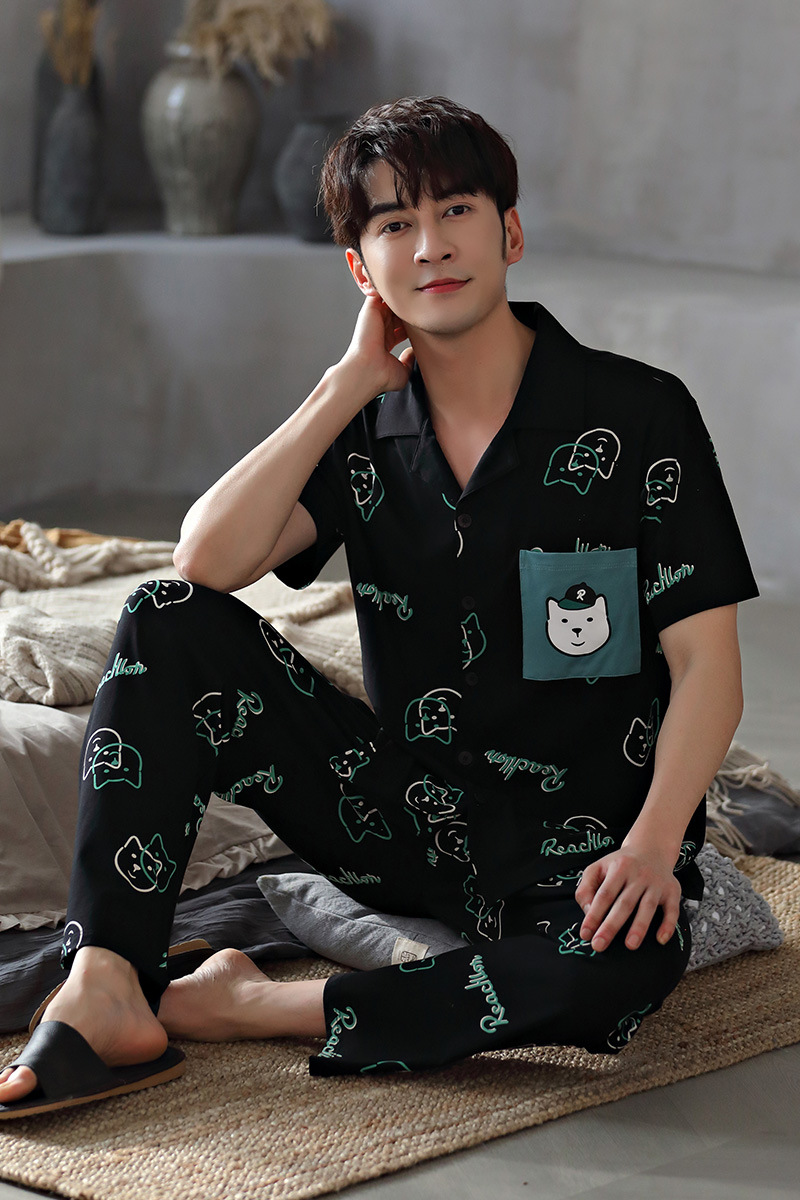 [클리어아웃 특가] 남녀공용 봄여름 반팔 잠옷, 심플 캐주얼 커플 홈웨어로 착용 가능