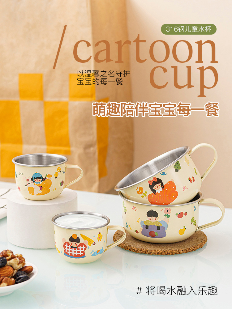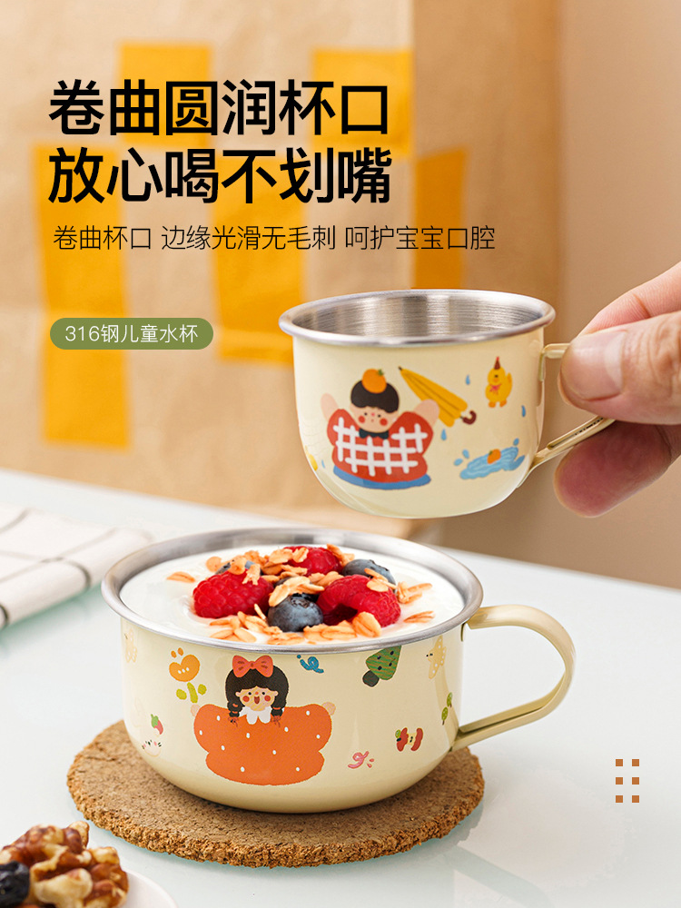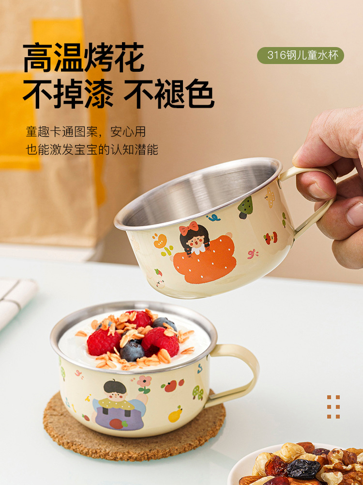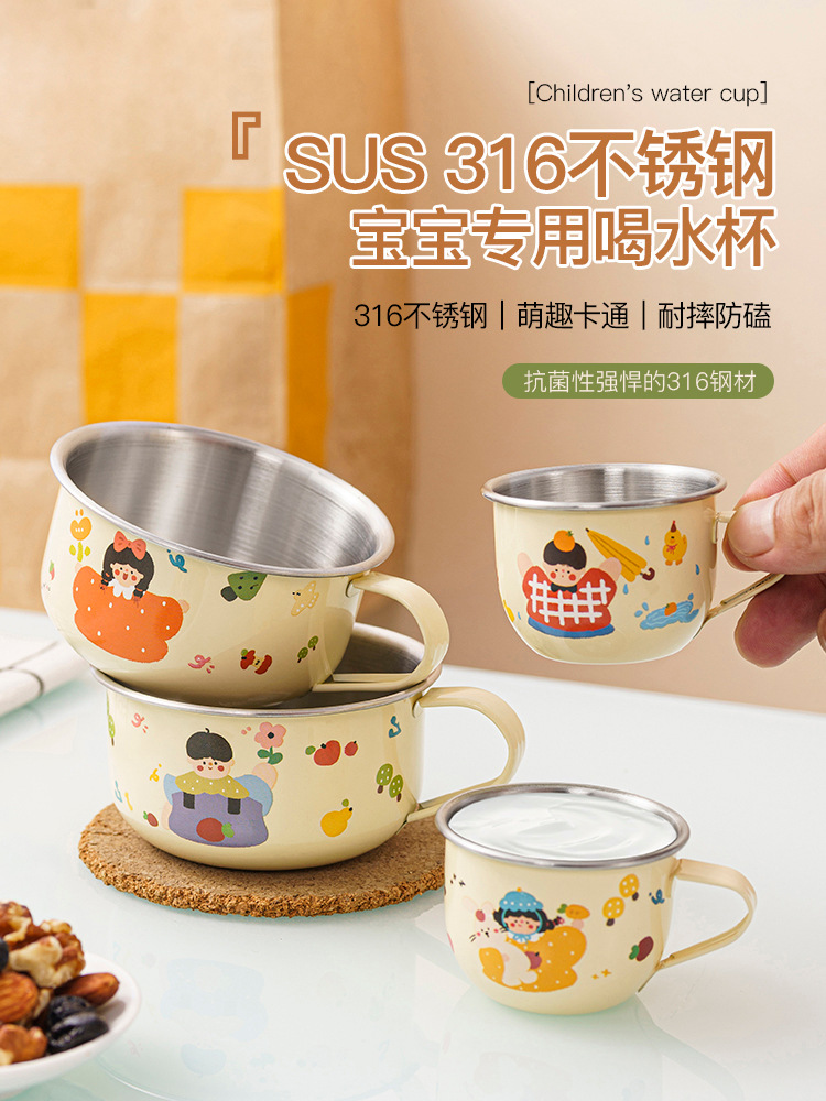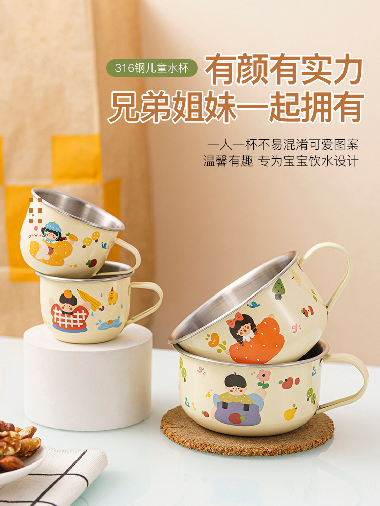 316 스테인레스 스틸 어린이 물 컵 가정용 마시는 컵 낙하 방지 아기 오픈 학습 마시는 컵 유아 컵스토어 가기