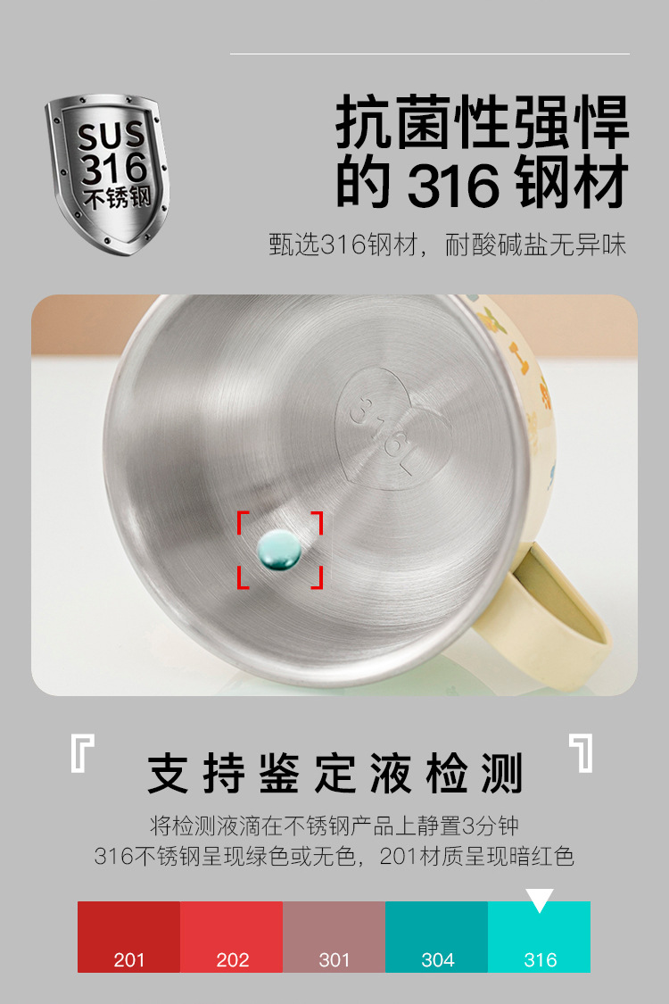 316 스테인레스 스틸 어린이 물 컵 가정용 마시는 컵 낙하 방지 아기 오픈 학습 마시는 컵 유아 컵