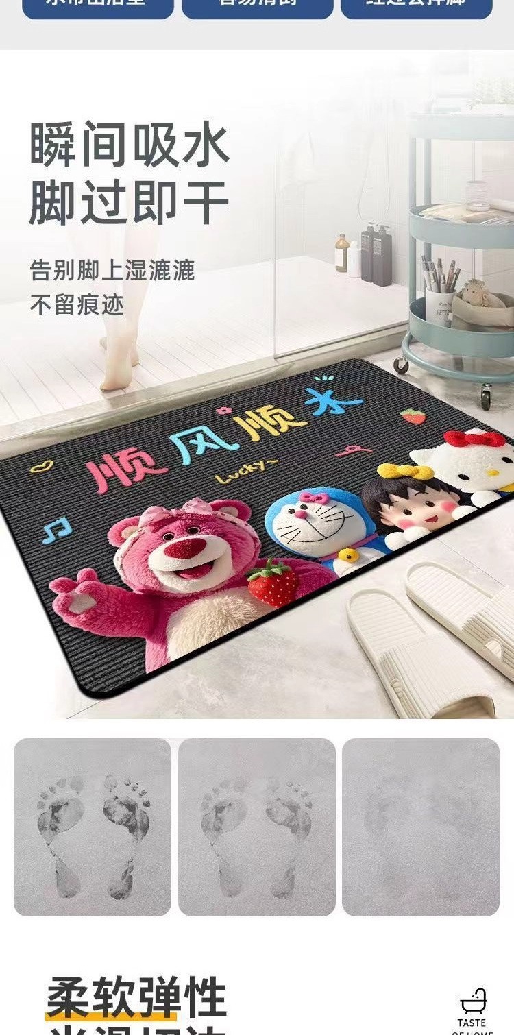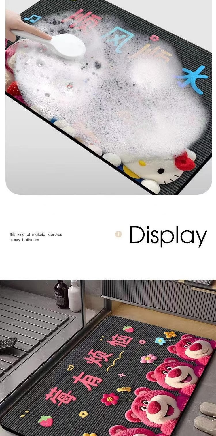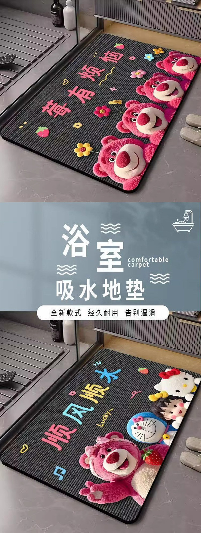 딸기곰 규조토 흡수 매트 만화 샤워실 발매트 화장실 입구 미끄럼 방지 내구성 바닥매트