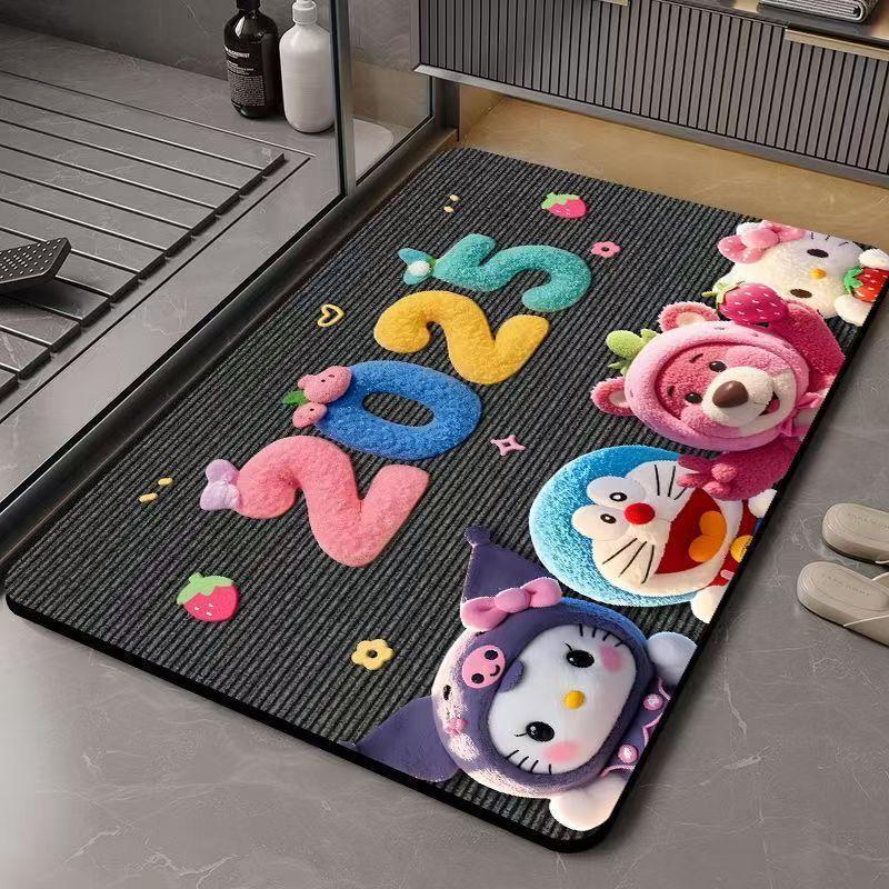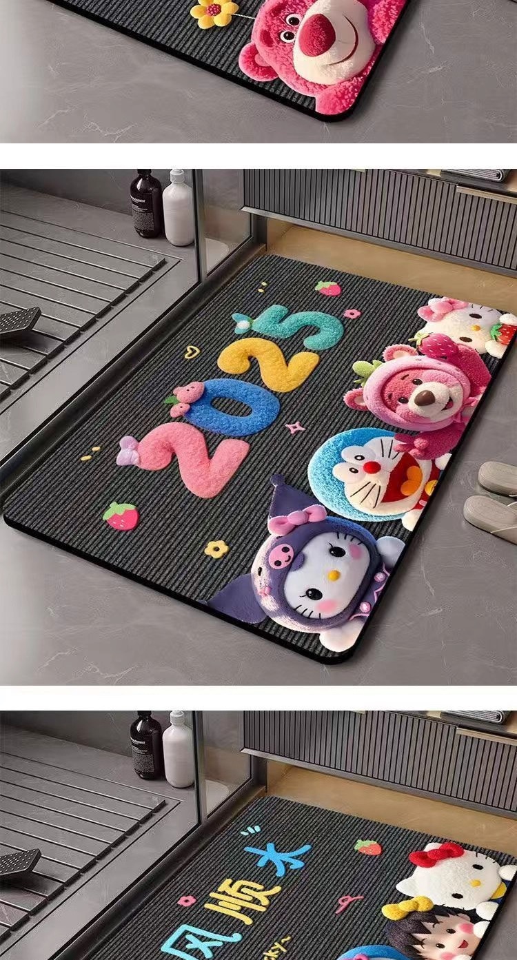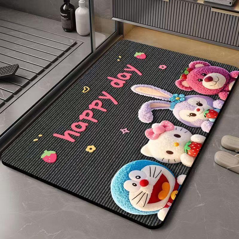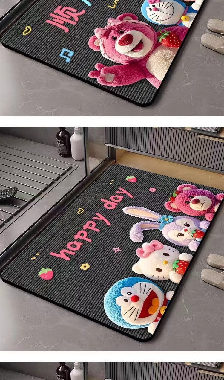 딸기곰 규조토 흡수 매트 만화 샤워실 발매트 화장실 입구 미끄럼 방지 내구성 바닥매트