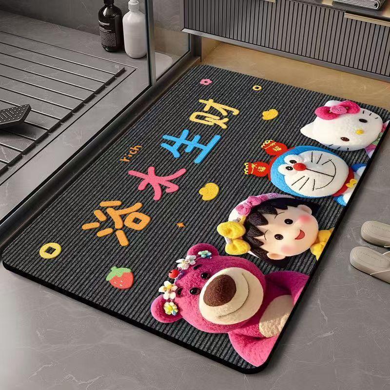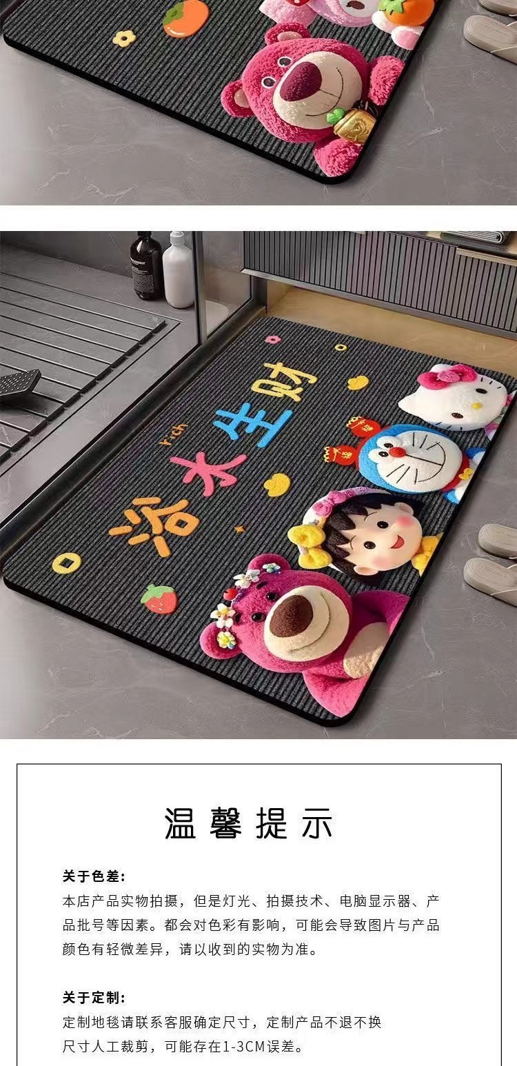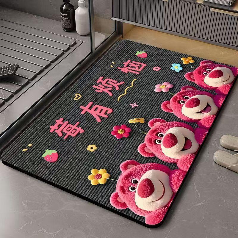 딸기곰 규조토 흡수 매트 만화 샤워실 발매트 화장실 입구 미끄럼 방지 내구성 바닥매트스토어 가기