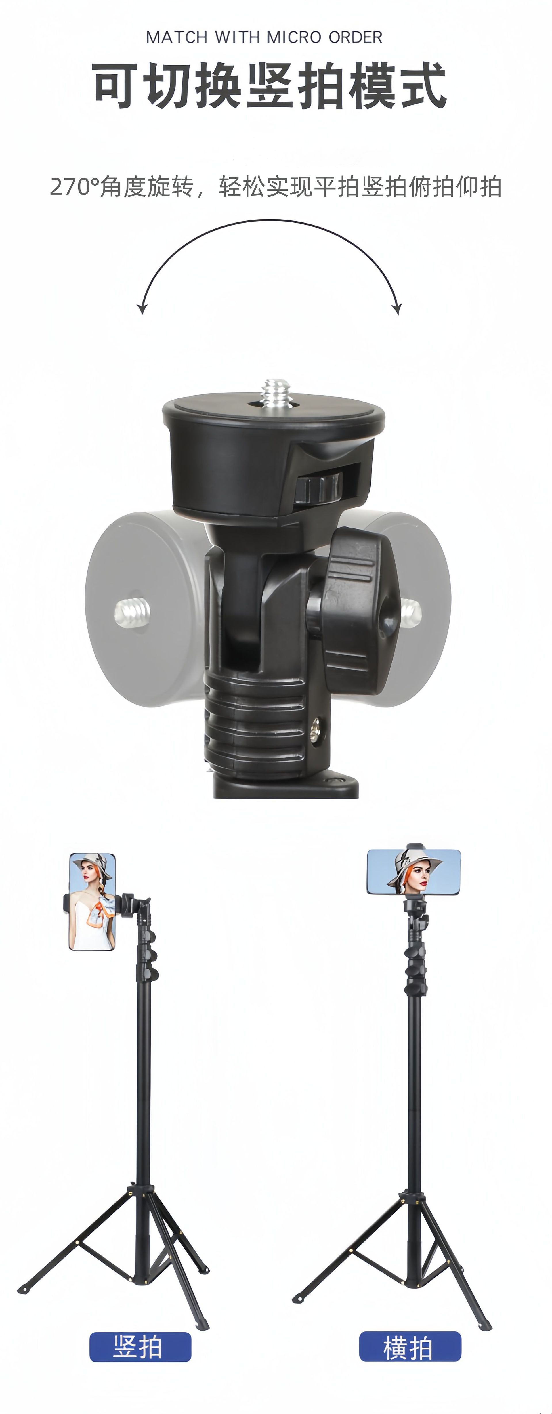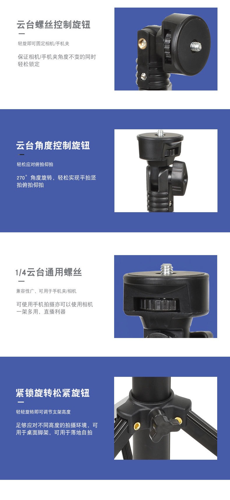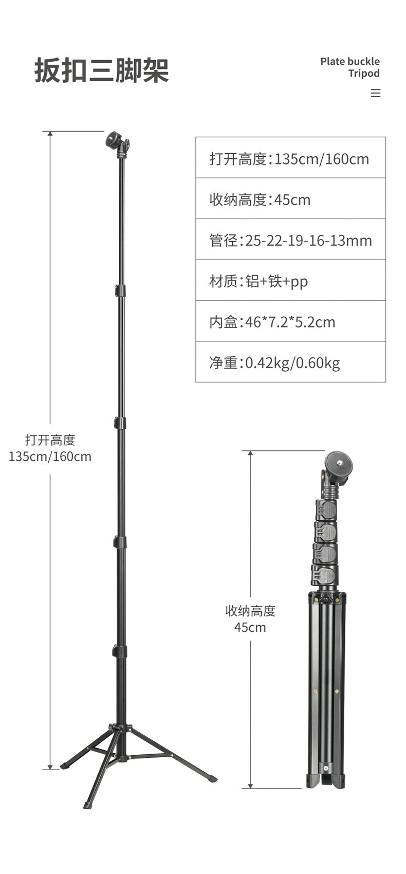 1.6m 셀카봉 휴대폰 홀더 일체형 알루미늄 합금 바닥 라이브 사진 보드 버클 삼각대