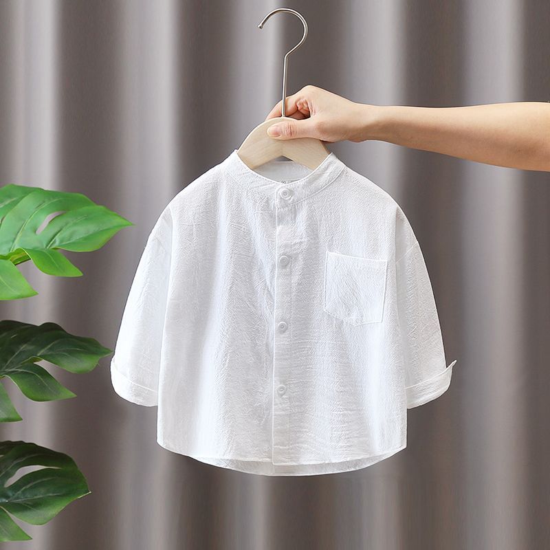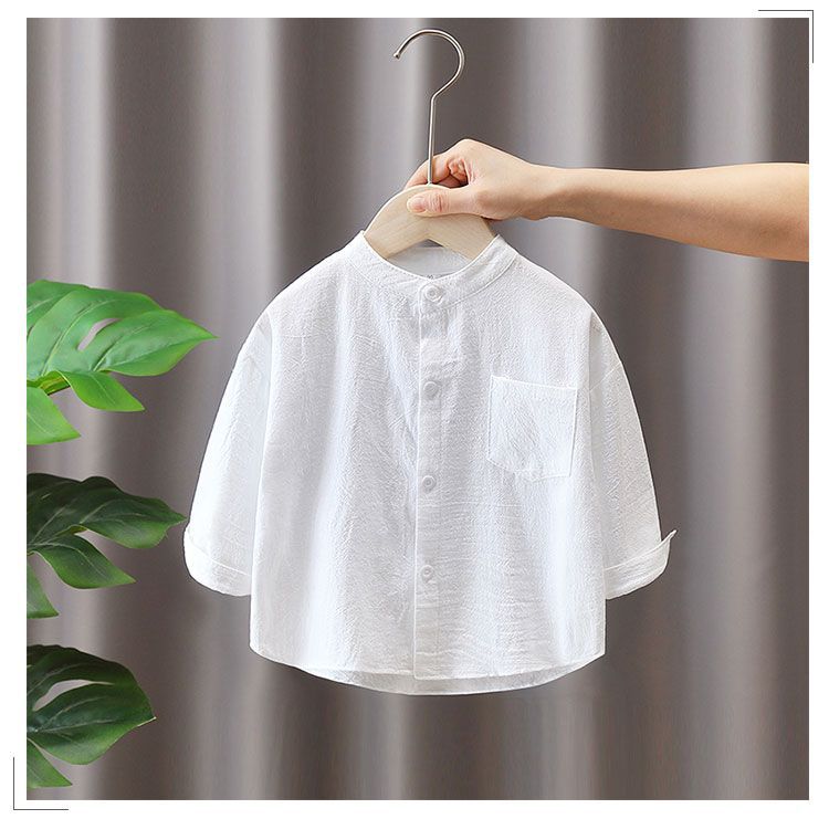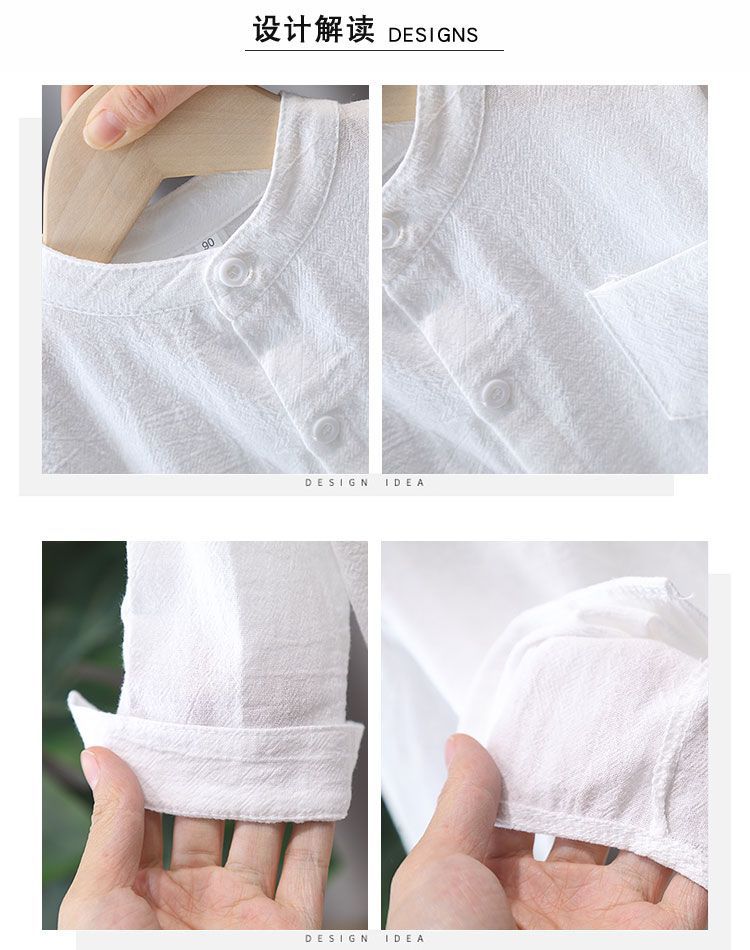 어린이 베이비 라운드 넥 소년 셔츠 새로운 긴팔 흰색면 및 린넨 탑 가을 봄, 가을 소년 셔츠