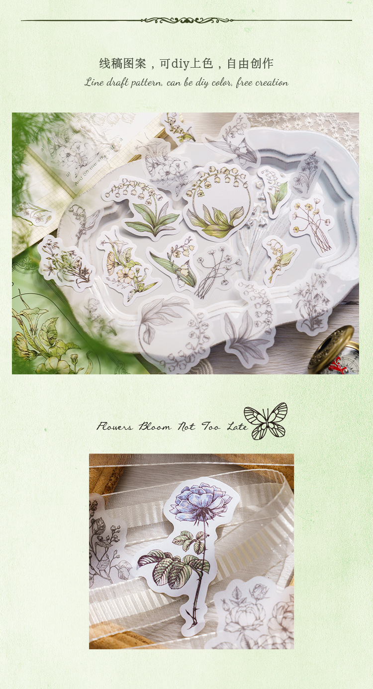 MoMo 식물 스티커 팩 미완성 드로잉 시리즈 핸드북 DIY 장식 콜라주 기본 재료 6가지 스타일스토어 가기