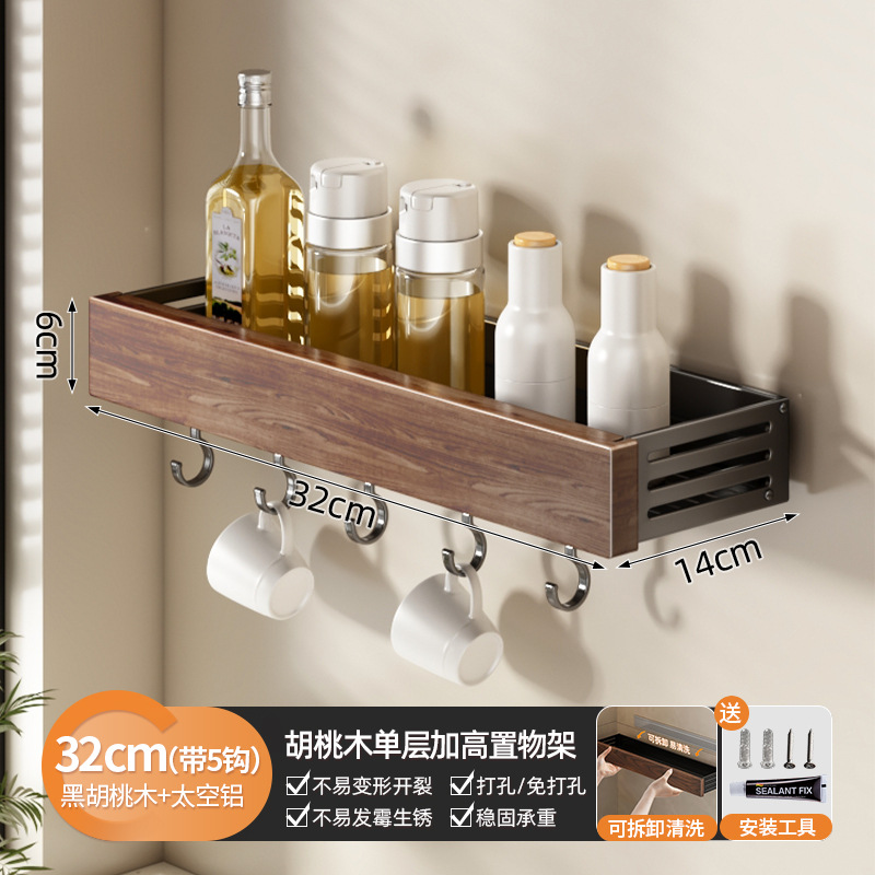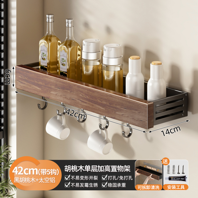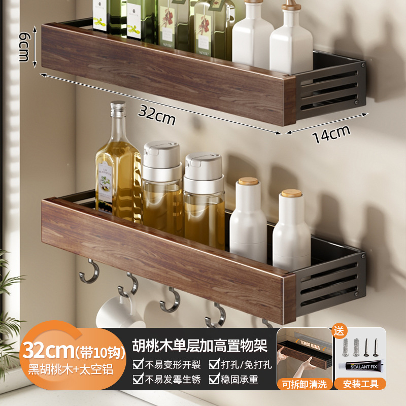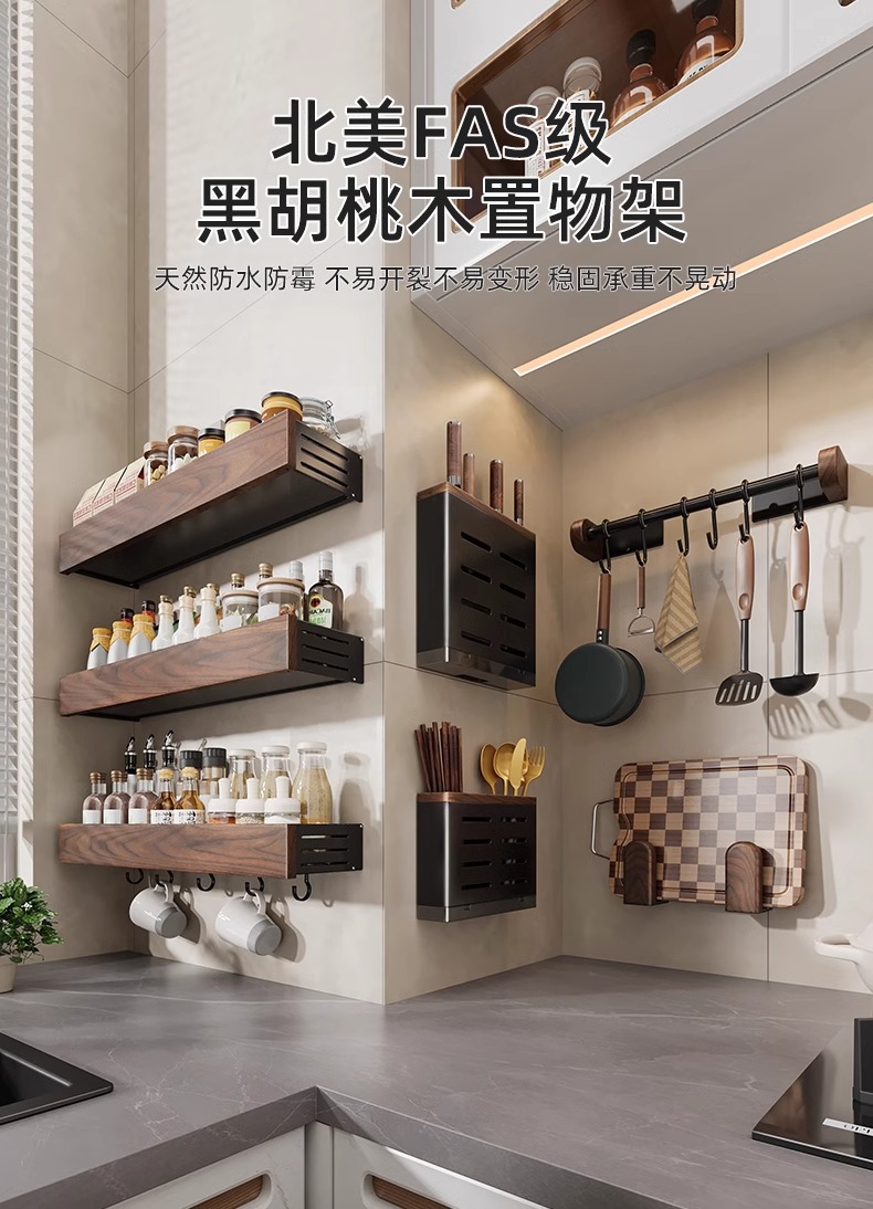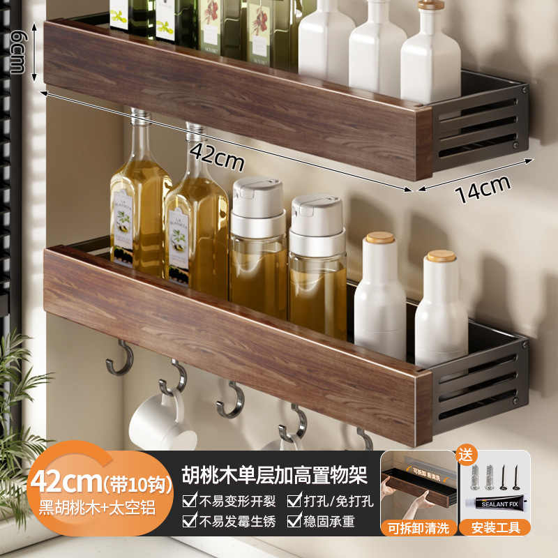 중세풍 주방 수납 선반, 호두나무 양념통 걸이형 다기능 조미료 보관함, 놀라운 제품스토어 가기