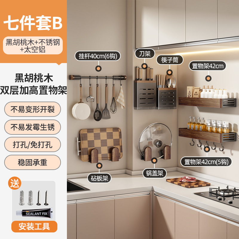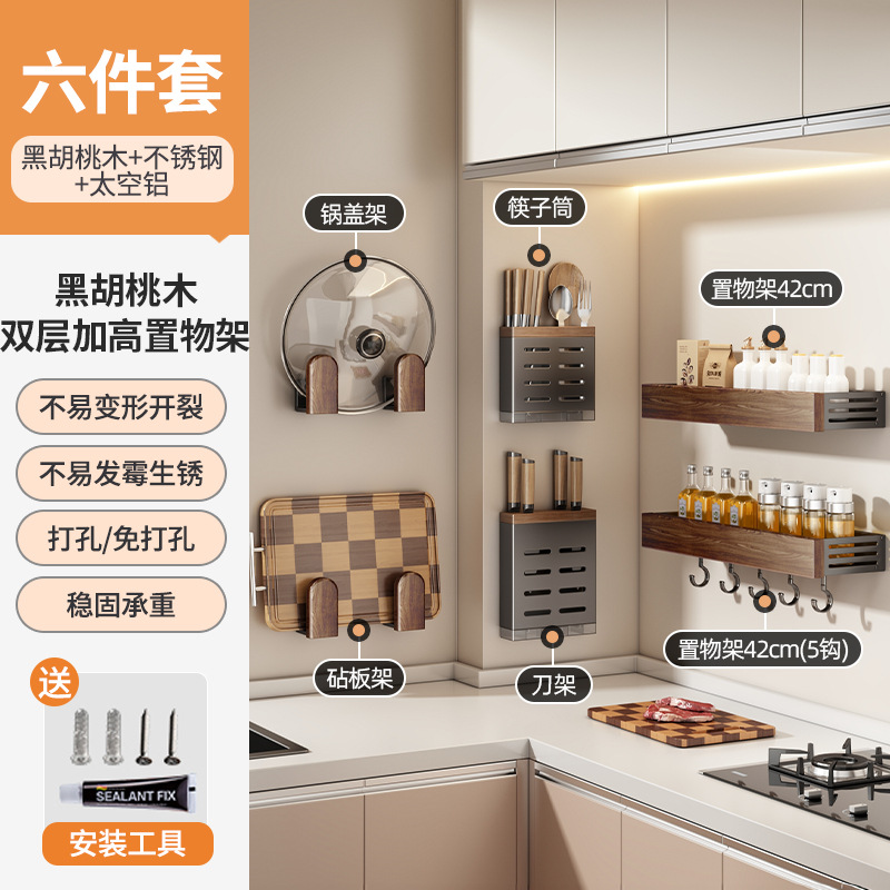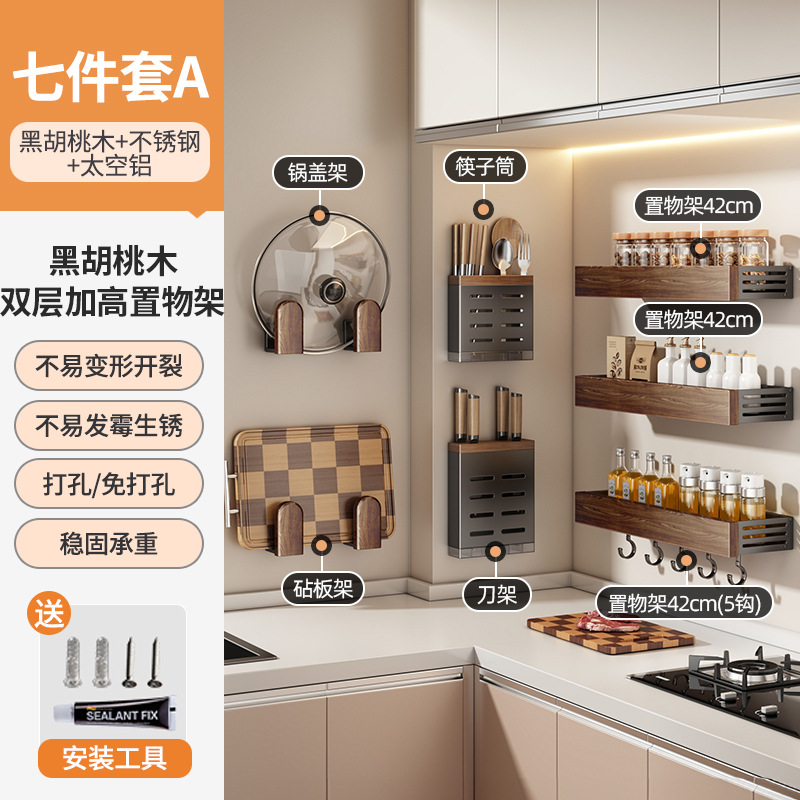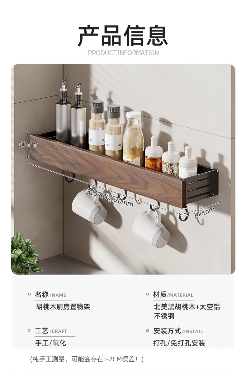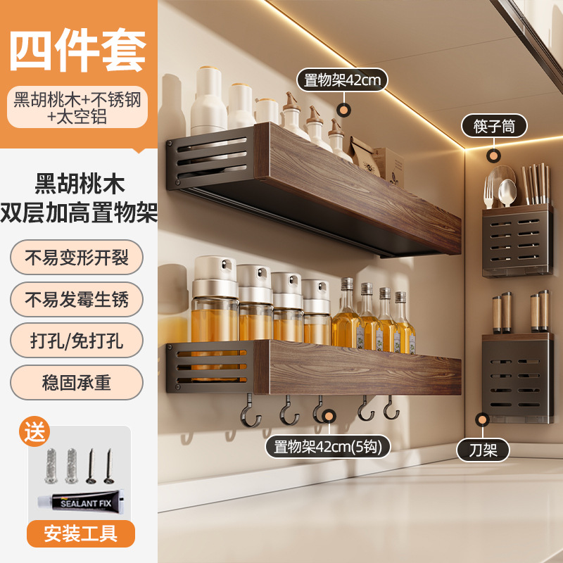 중세풍 주방 수납 선반, 호두나무 양념통 걸이형 다기능 조미료 보관함, 놀라운 제품스토어 가기