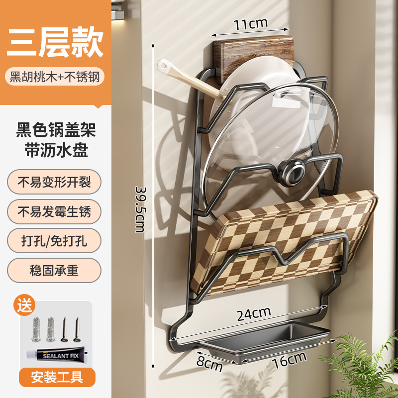 • [중세풍] 호두나무 3단 냄비뚜껑걸이(공간 알루미늄 물받이 포함)