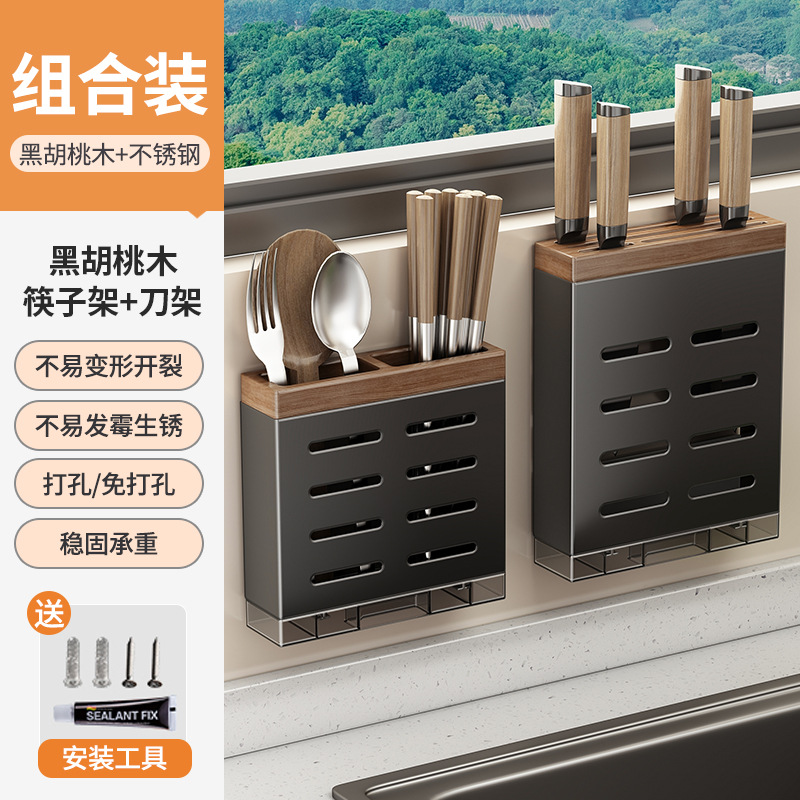 • [중세풍] 호두-스테인리스 칼꽂이 + 스테인리스 젓가락통