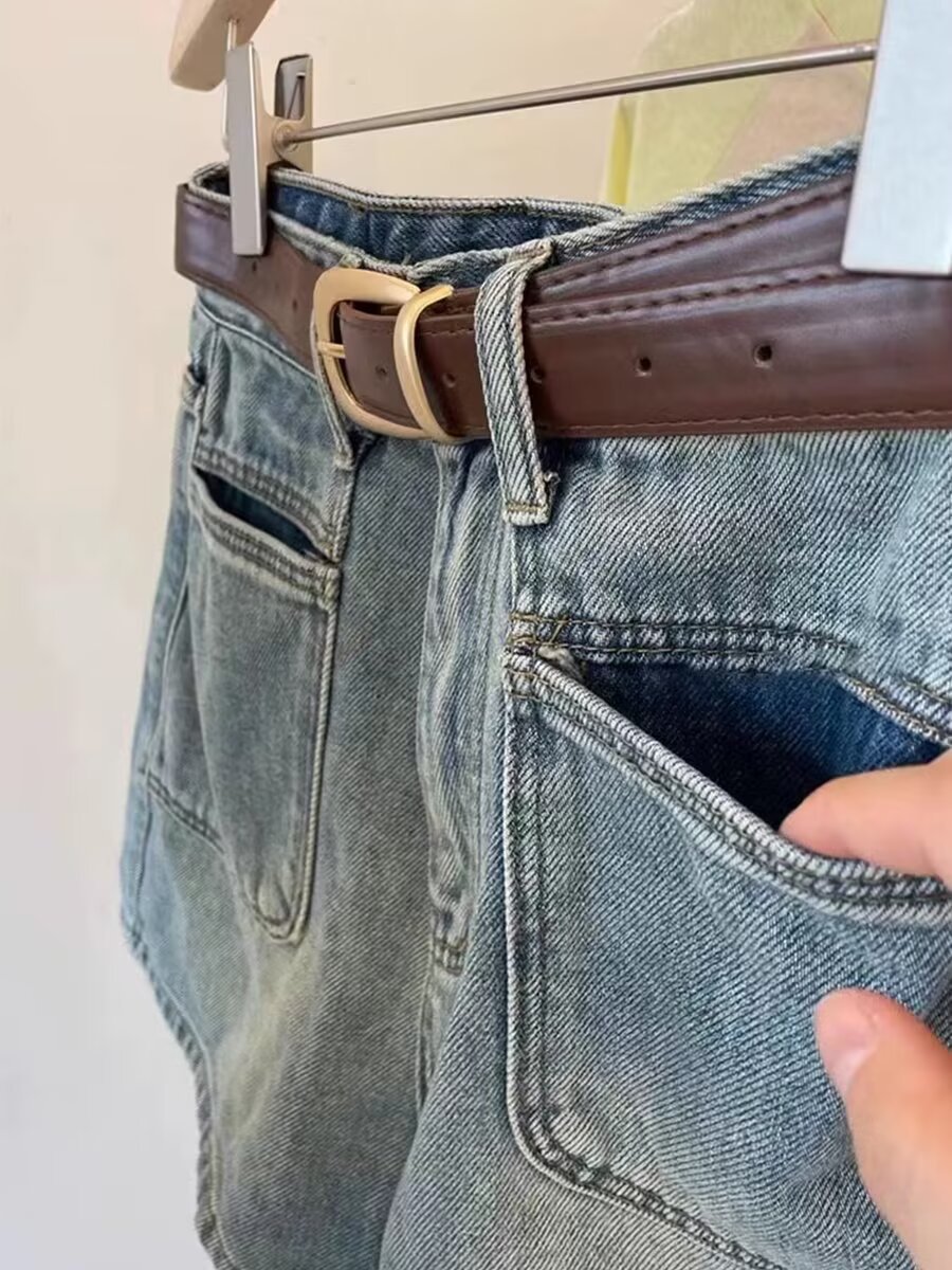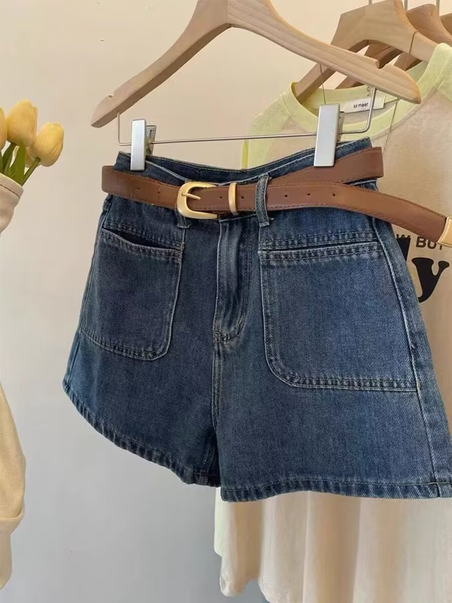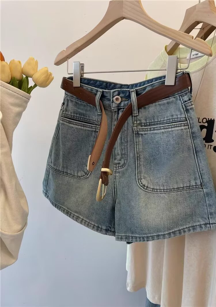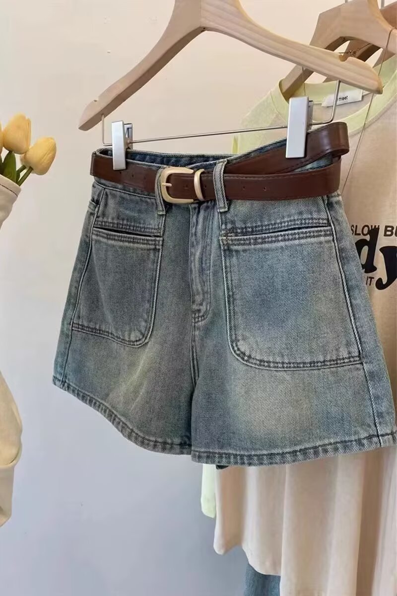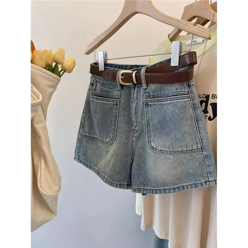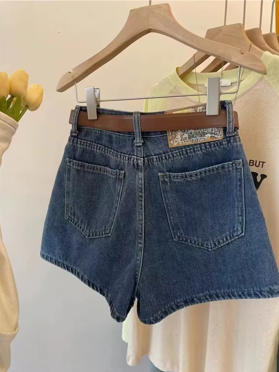 여름 신작 패셔너블하고 활용도가 높은 작은 사이즈의 하이웨이스트 슬리밍 A라인 와이드 레그 핫팬츠, 배형 바디 데님 반바지 여성용