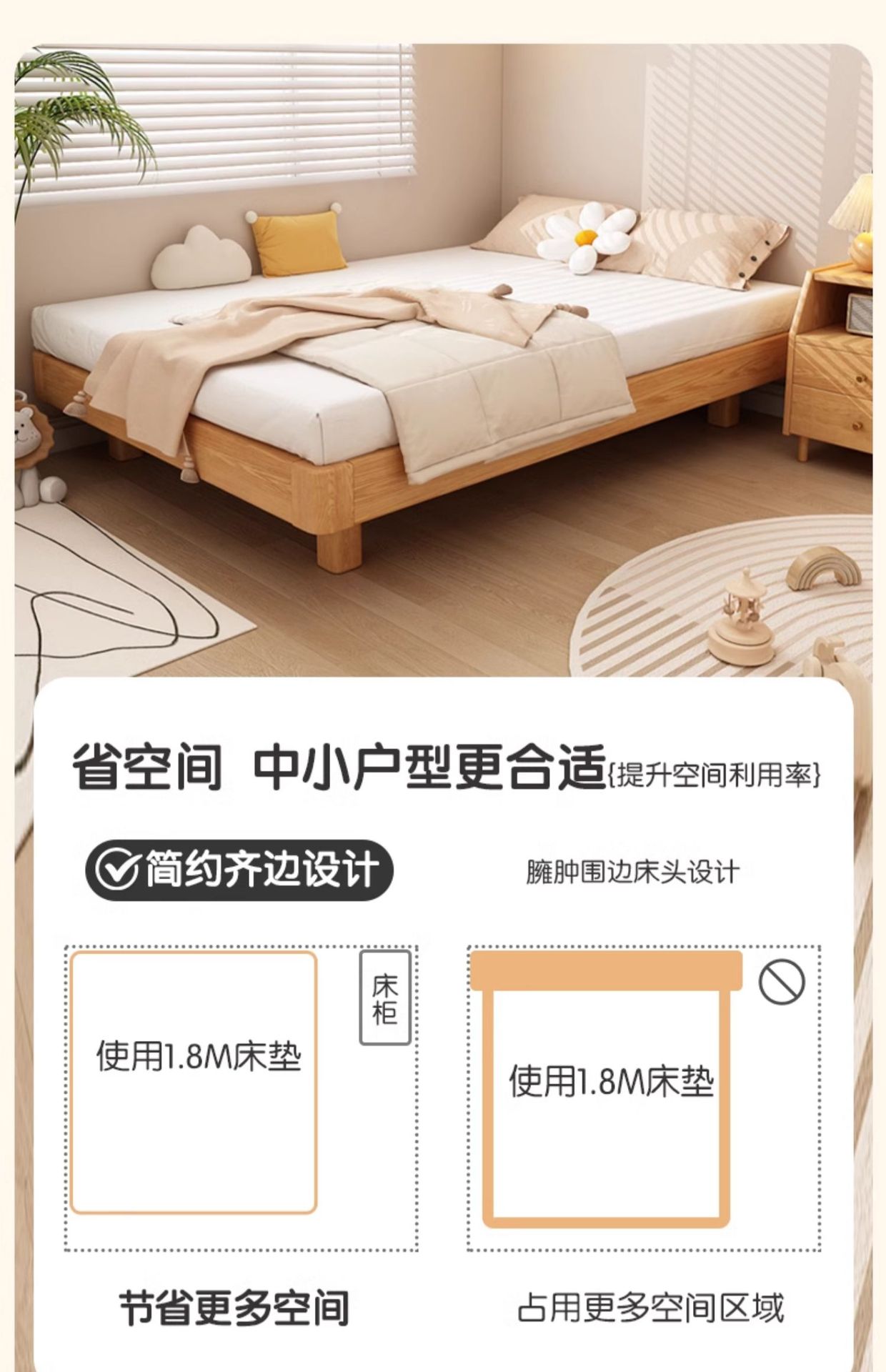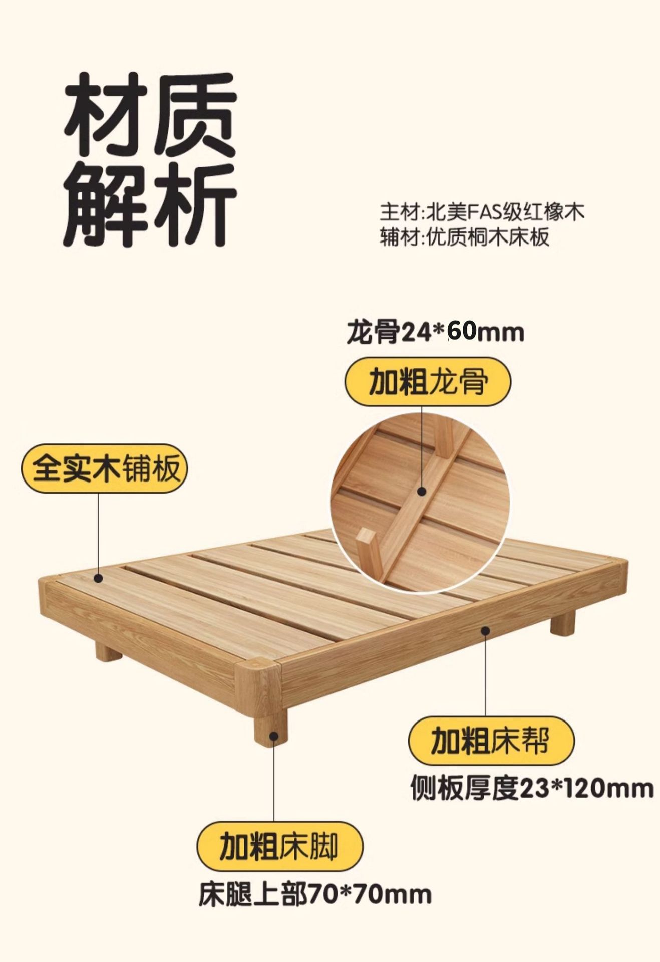 # 레드 오크 전체 단단한 나무 침대 침대 옆 플랫폼 없음 서스펜션 침대 1.5/35 어린이 침대 침실 다다미 갈비뼈 침대