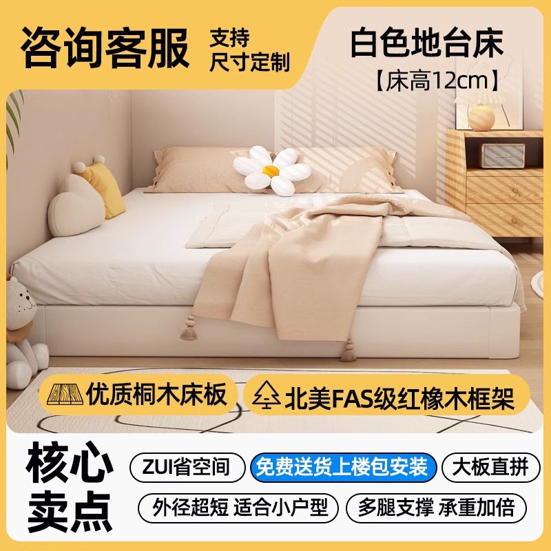 • [침대 높이 12CM] 화이트 플랫폼 침대丨위층 + 설치 포함