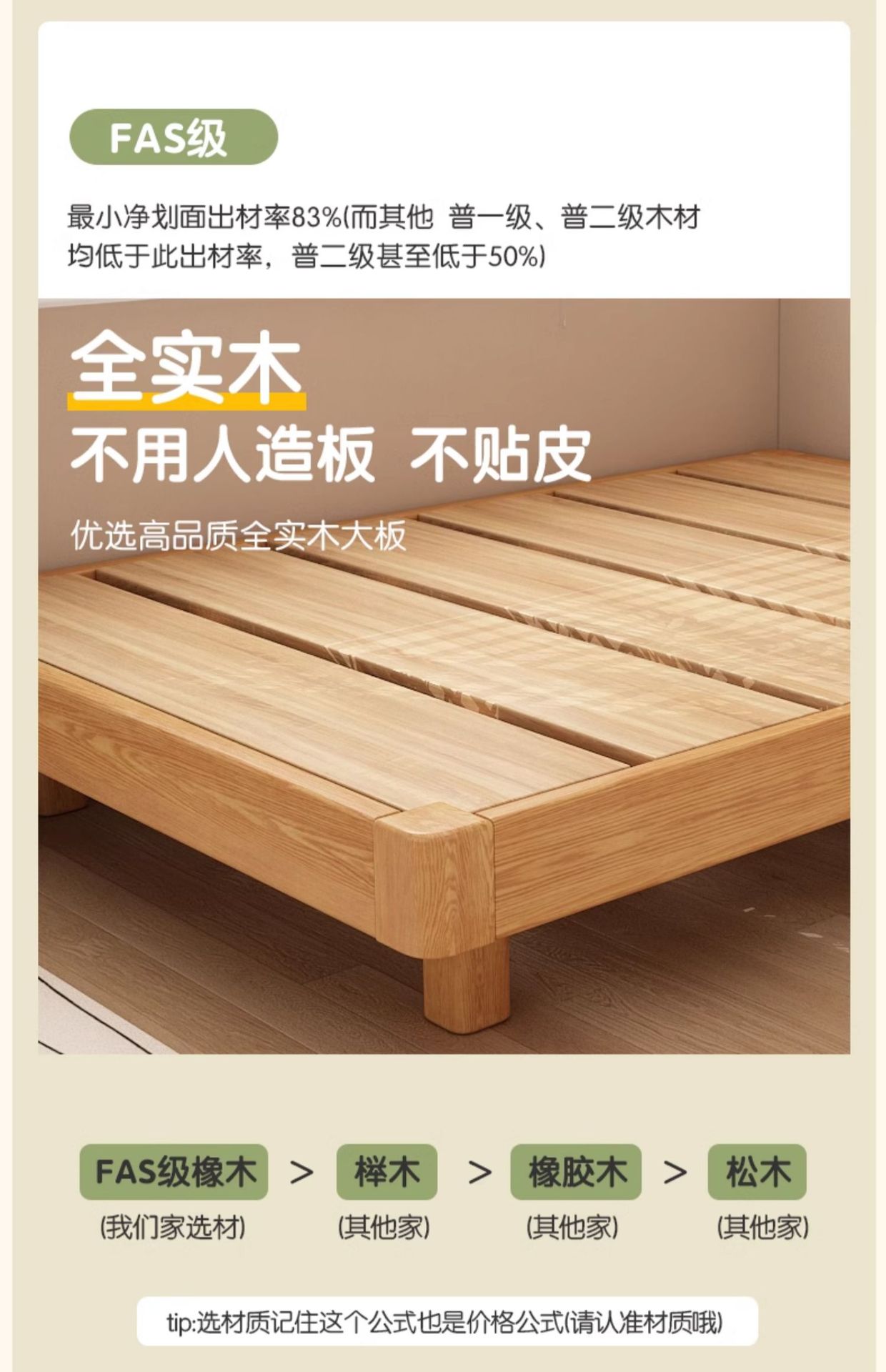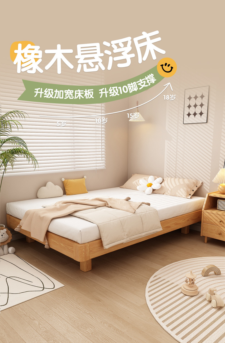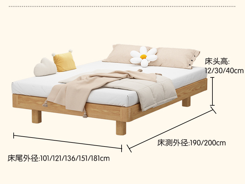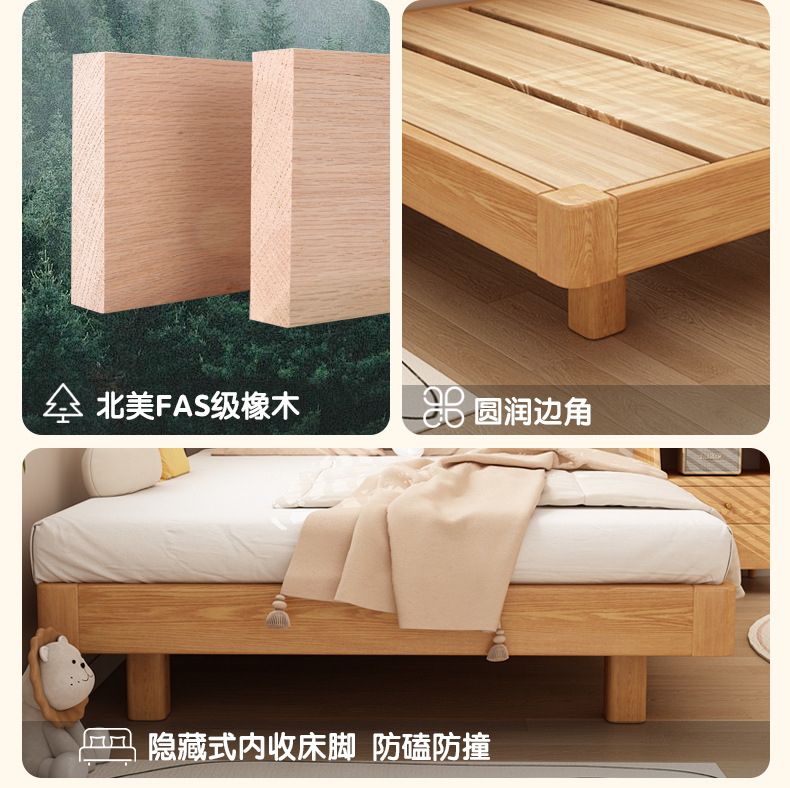 # 레드 오크 전체 단단한 나무 침대 침대 옆 플랫폼 없음 서스펜션 침대 1.5/35 어린이 침대 침실 다다미 갈비뼈 침대스토어 가기