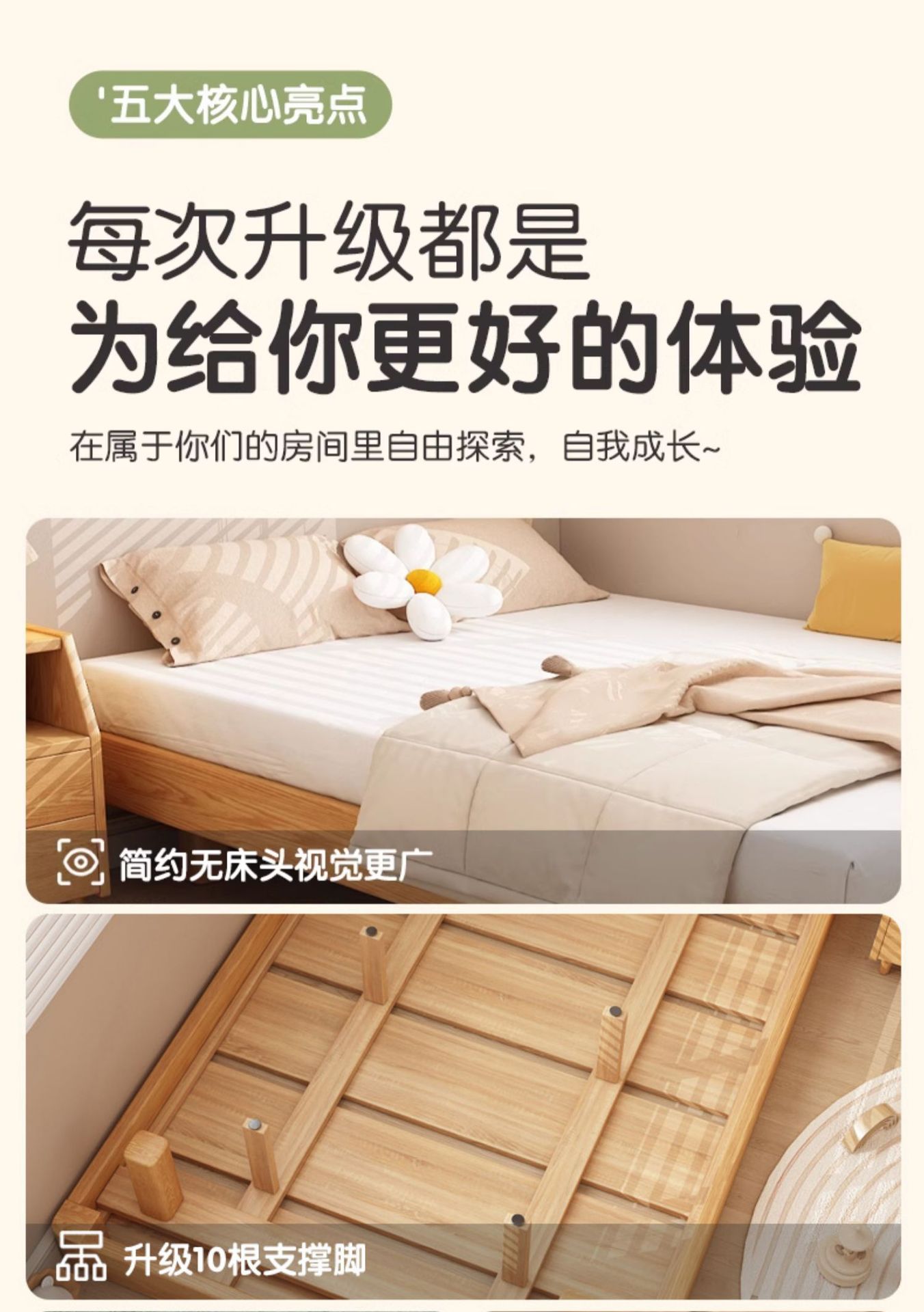 • [침대 높이 12CM] 원목 컬러 플랫폼 침대丨위층 + 설치 포함