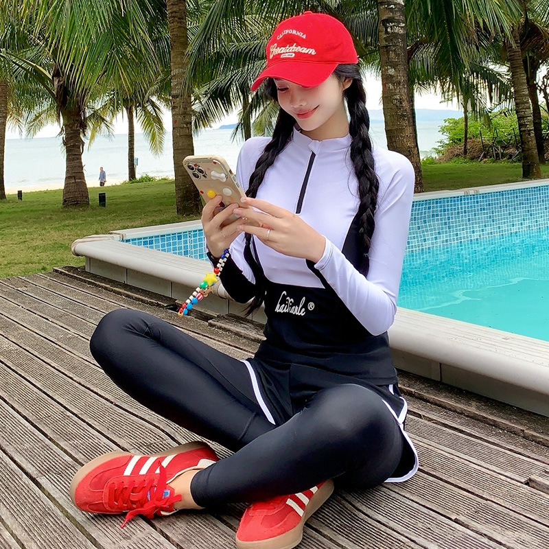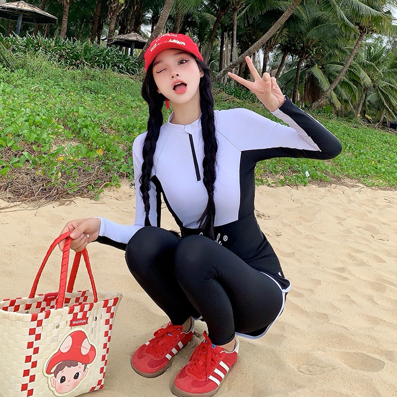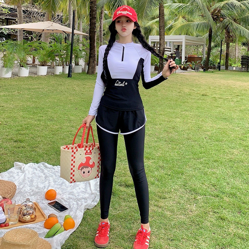 새로운 스타일의 잠수복 여성 스플릿 긴팔 바지 보수적 스노클링 잠수복 수영복 서핑 슈트스토어 가기