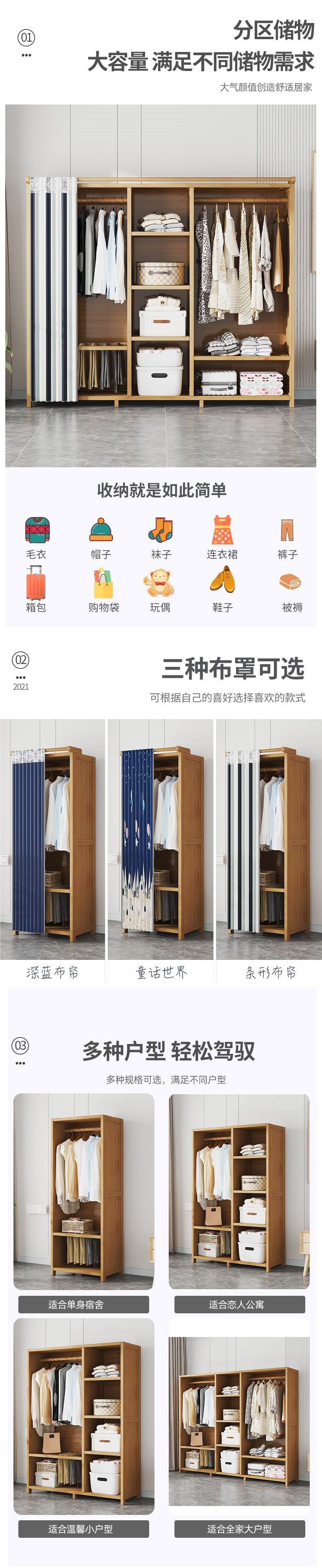 임대용 단단한 나무 옷장, 침실, 간단하고 경제적이며 튼튼하고 내구성이 뛰어난 수납 선반, 가정용 다층 옷장스토어 가기