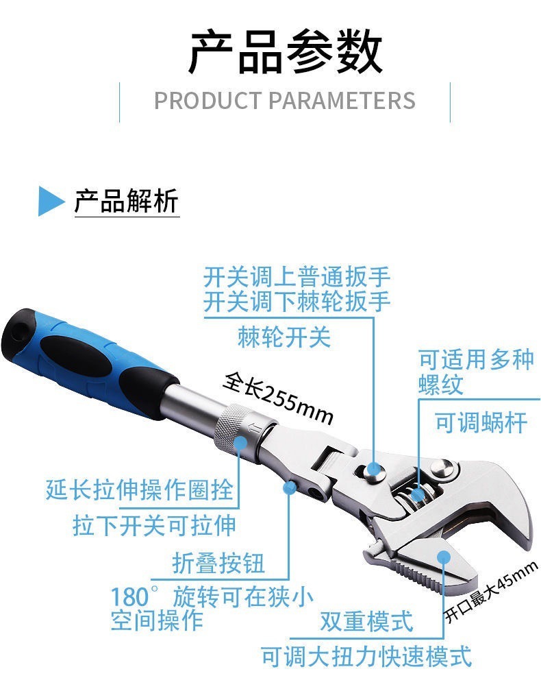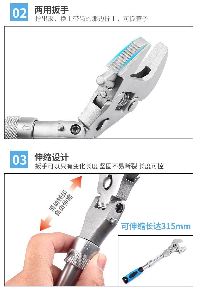 10inch 조절식 렌치 이중 목적 접이식 범용 래칫 렌치 전기 수리 및 배수관 욕실 텔레스코픽 렌치 도매 가능스토어 가기